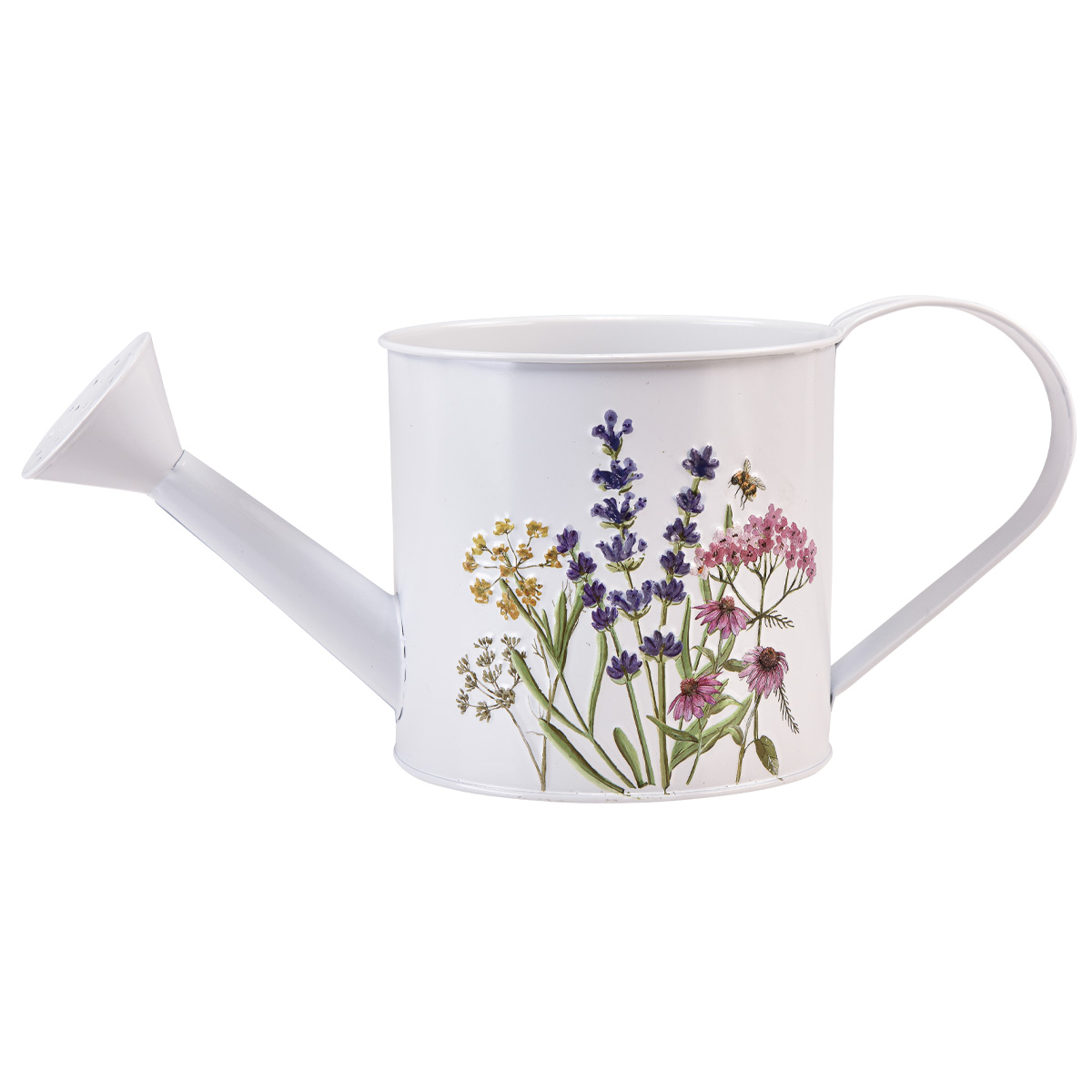 Produktname: Weiße Metall Gießkanne mit Blumenmotiv 13,5cm Deko Pflanzkanne