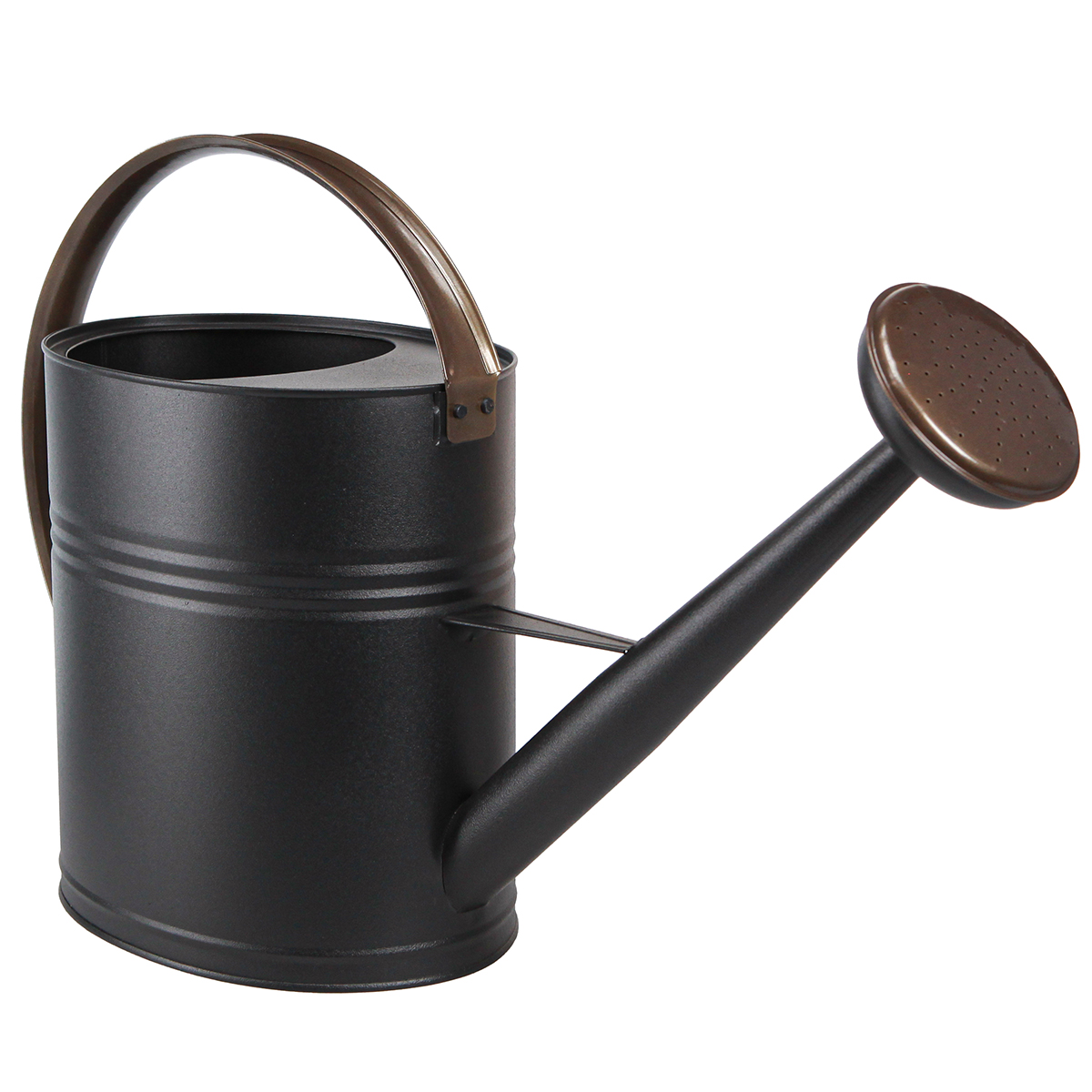 Stilvolle Deko-Gießkanne aus Metall in Schwarz und Olivgrün – ein Eyecatcher für Balkon und Wintergarten