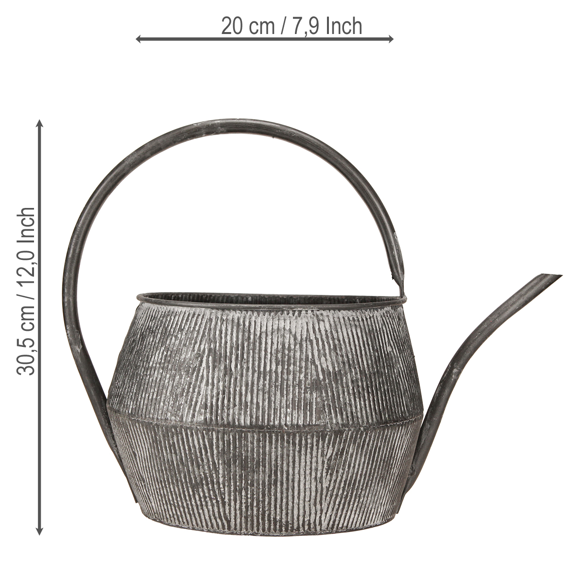 Willkommen in der Welt der charmanten Dekoration, die Stil mit Funktionalität verbindet. Die Deko-Gießkanne aus Metall in Schwarz ist nicht nur ein Blickfang, sondern auch ein zeitloses Dekorationsstück, das in jedem Raum für Gesprächsstoff sorgen wird. Inspiriert von der Form einer traditionellen Teekanne oder eines nostalgischen Wasserkessels, vereint dieses Stück die Eleganz vergangener Zeiten mit einem modernen Touch. Das schwarze Metall ist sanft grau gewaschen und passt perfekt in retro, vintage oder sogar minimalistischen Einrichtungsstil. Mit einem stattlichen Maß von etwa 39cm × 25cm × 30,5cm bietet die Gießkanne großzügigen Raum, um als stilvoller Blumentopf oder Übertopf aus Metall zu dienen. Für die Direktbepflanzung wird empfohlen, die Deko-Gießkanne im Teekannen-Stil mit Pflanzfolie auszulegen und mit einer Drainageschicht zu versehen, um die optimale Pflanzenpflege zu gewährleisten. Nutzen Sie dieses Stück als Balkon-Deko oder als Teil Ihrer Vintage-Deko für ein stimmiges Ambiente im Innen- und Außenbereich.