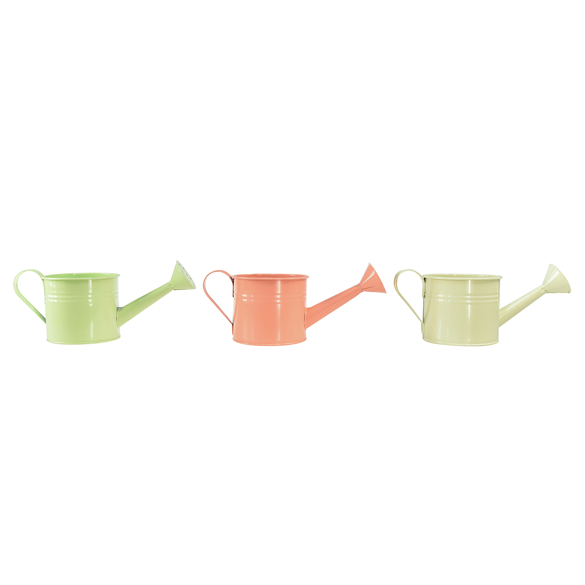Deko Gießkanne Set in Pastell Lachs, Grün, Gelbgrün - Metall Übertopf Ø11cm H10cm 8 Stück