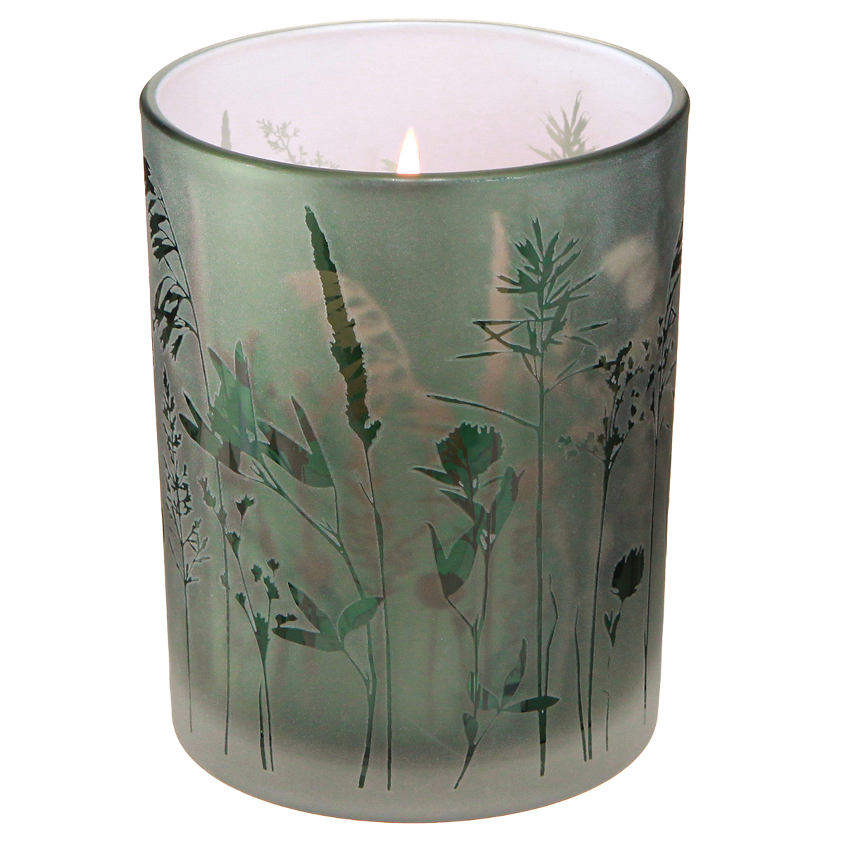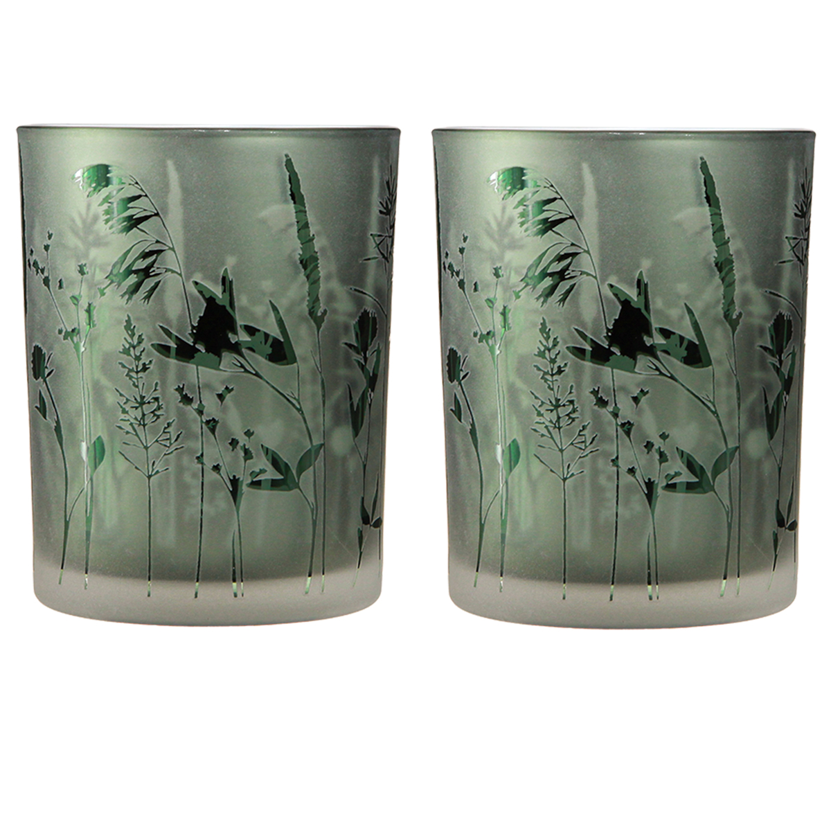 Deko Glas Windlicht Grün Weiß Motiv Wiese H12,5cm 2 St