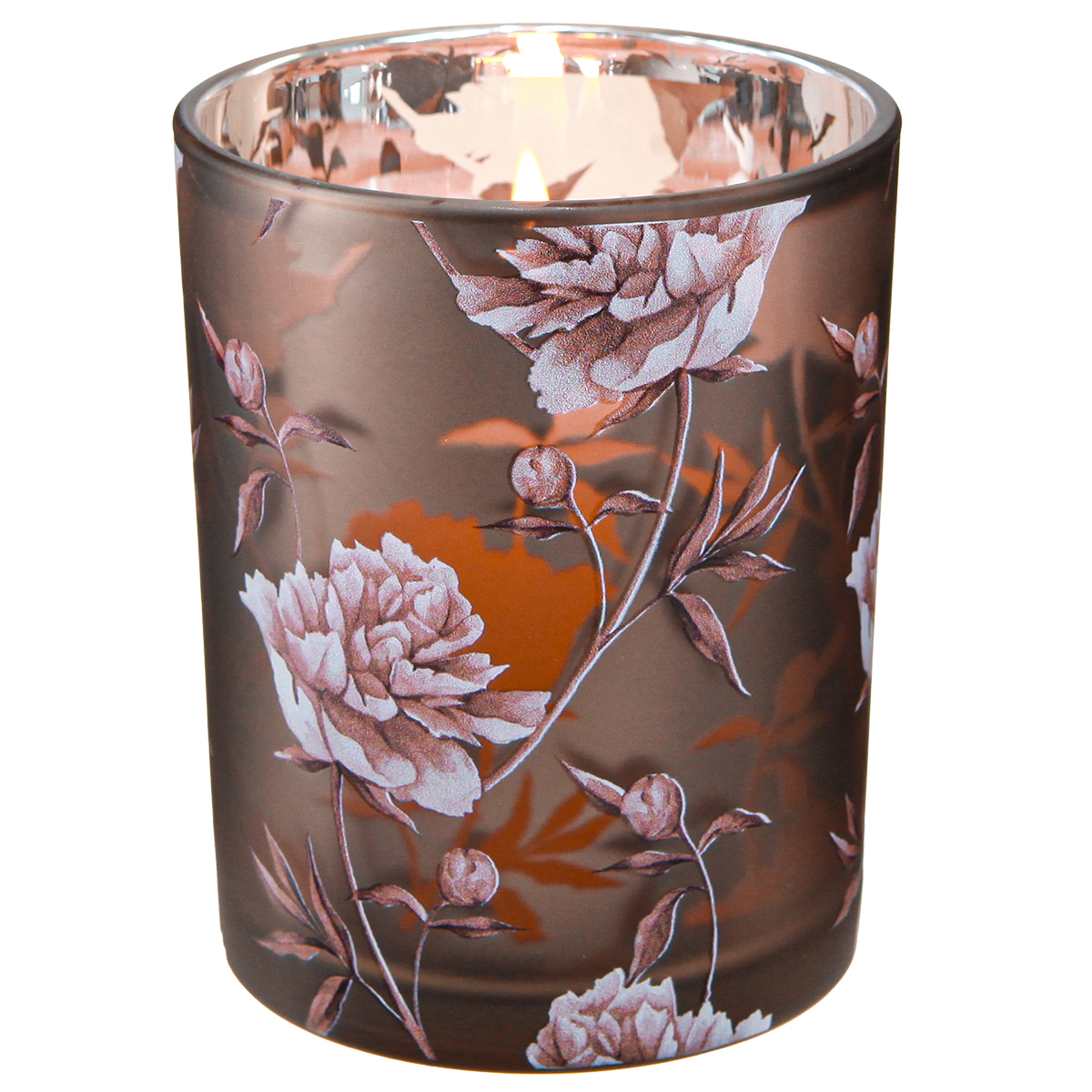 Deko Glas Windlicht Pfingstrosen Silber Braun H12,5cm 2 St