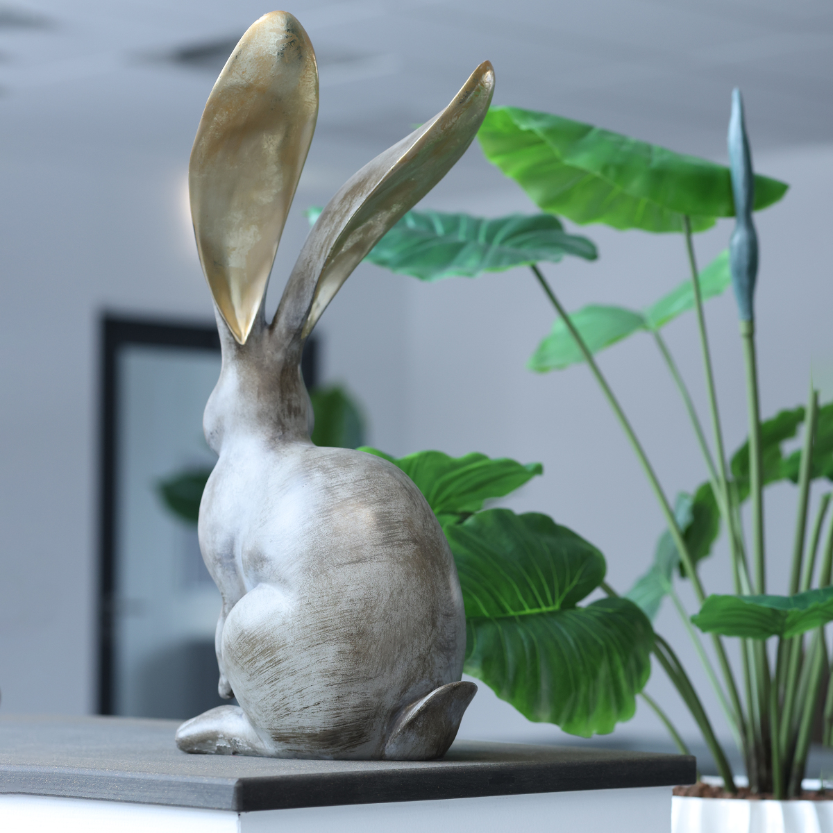 Warum ist diese Hasenfigur ein Must-have für die Frühlings- und Osterzeit? Es liegt an der grandiosen Kombination aus Design, Material und Funktionalität. Mit seiner stattlichen Größe von 52 cm zieht der Hase die Blicke magisch an, ohne aufdringlich zu wirken. Die goldfarbenen, innen glänzenden Ohren verleihen ihm das gewisse Etwas – perfekt, um ein luxuriöses Flair zu schaffen. Das Polystone-Material ist zudem robust und wetterbeständig, wodurch sich der Hase nicht nur für den Innenbereich, sondern auch für Balkon oder Garten eignet.