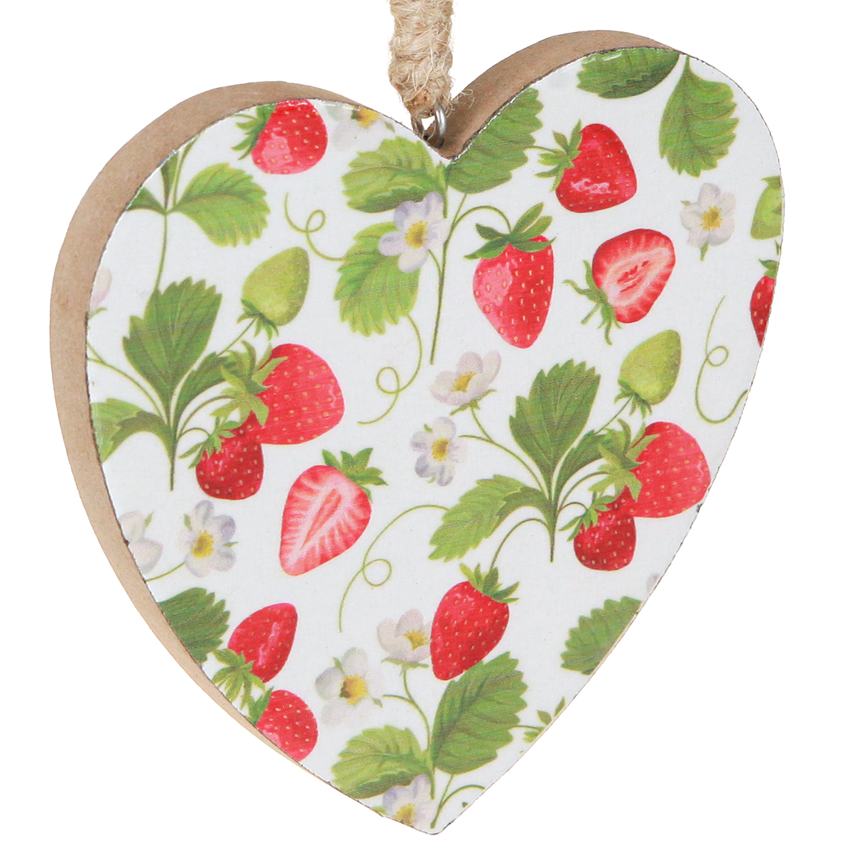 Produktname: Deko-Herz mit Erdbeermotiv – Sommerlicher Holzanhänger für Landhaus-Deko 10cmx10cm 4 St