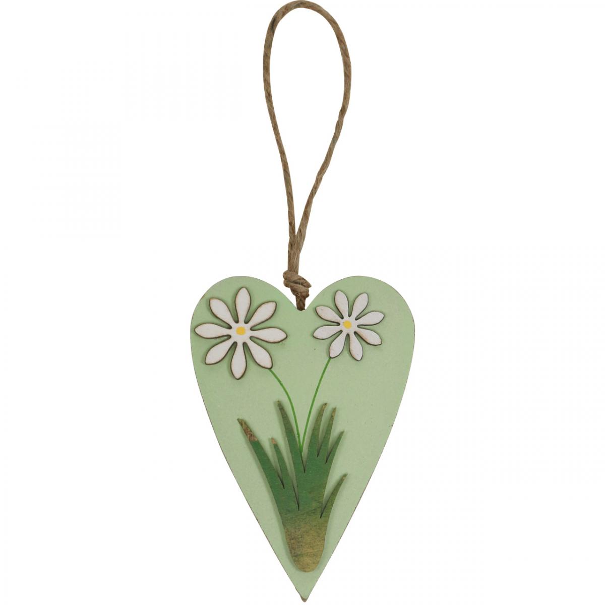 Deko Herzen zum Hängen mit Blumen Holz Grün, Weiß 8,5×12cm 4 St