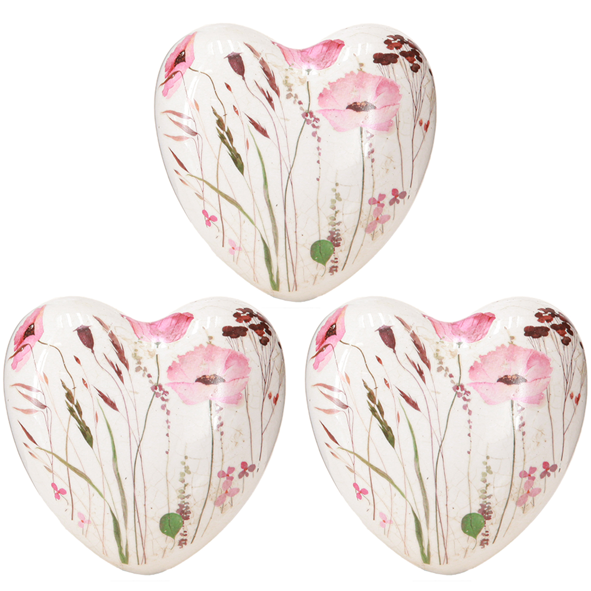 Deko-Herzen aus Keramik mit Mohn-Motiv und Krakelee-Effekt – Tischdeko im Vintage-Look