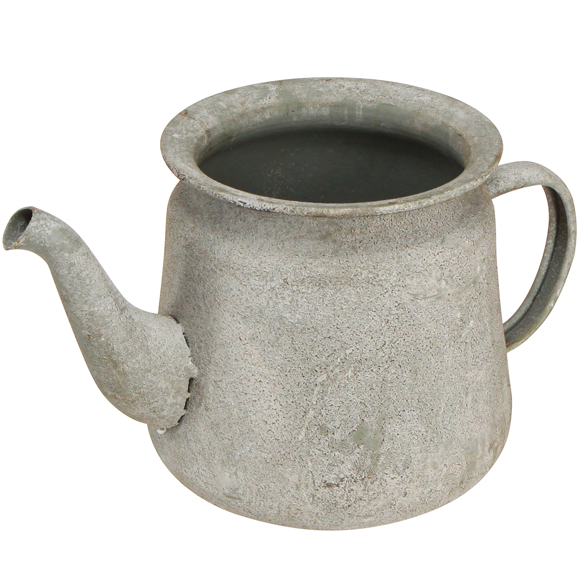 Deko Kanne Metall Vintage Teekanne Grau 24×14×14cm Retro Shabby Chic Stil