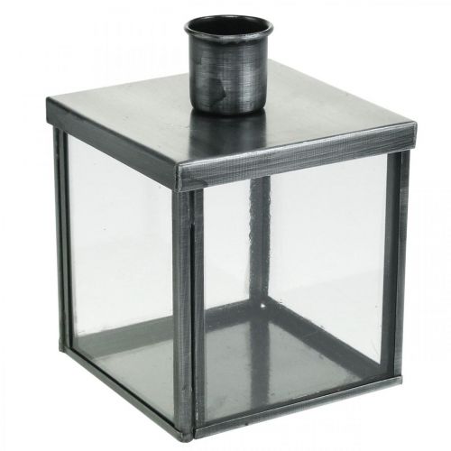 Der Deko-Kerzenhalter für Stabkerzen verschönert Ihr Candlelight-Dinner gleich zweifach! Der Deckel der Kerzendeko ist abnehmbar. Hier gehört die Kerze aber definitiv nicht hinein. Sie können im Inneren der "Laterne" kleine Deko-Accessoires arrangieren. Danach setzen Sie den Kerzenständer wieder auf und stellen eine Stabkerze in die dafür vorgesehene Halterung.Der quadratische Kerzenhalter aus Metall ist silbern und dazu anthrazit gebürstet, um einen geheimnisvollen Vintage-Look zu erzeugen. Die Seitenwände sind aus klarem Glas. Bei Kerzenschein sieht die Tischdeko aus Metall natürlich noch viel stimmungsvoller aus! Schon ein Tischleuchter genügt, um den ganzen Zauber dieser Metalldeko zu entfalten. Eine tolle Deko-Idee mit Kerzen als atmosphärische Beleuchtung fürs Restaurant, das Café oder für den romantischen Abend zu zweit, die außerdem sehr platzsparend ist. Mit mehreren Deko-Kerzenhaltern können Sie dagegen die Dekorationen im Glaswürfel variieren.