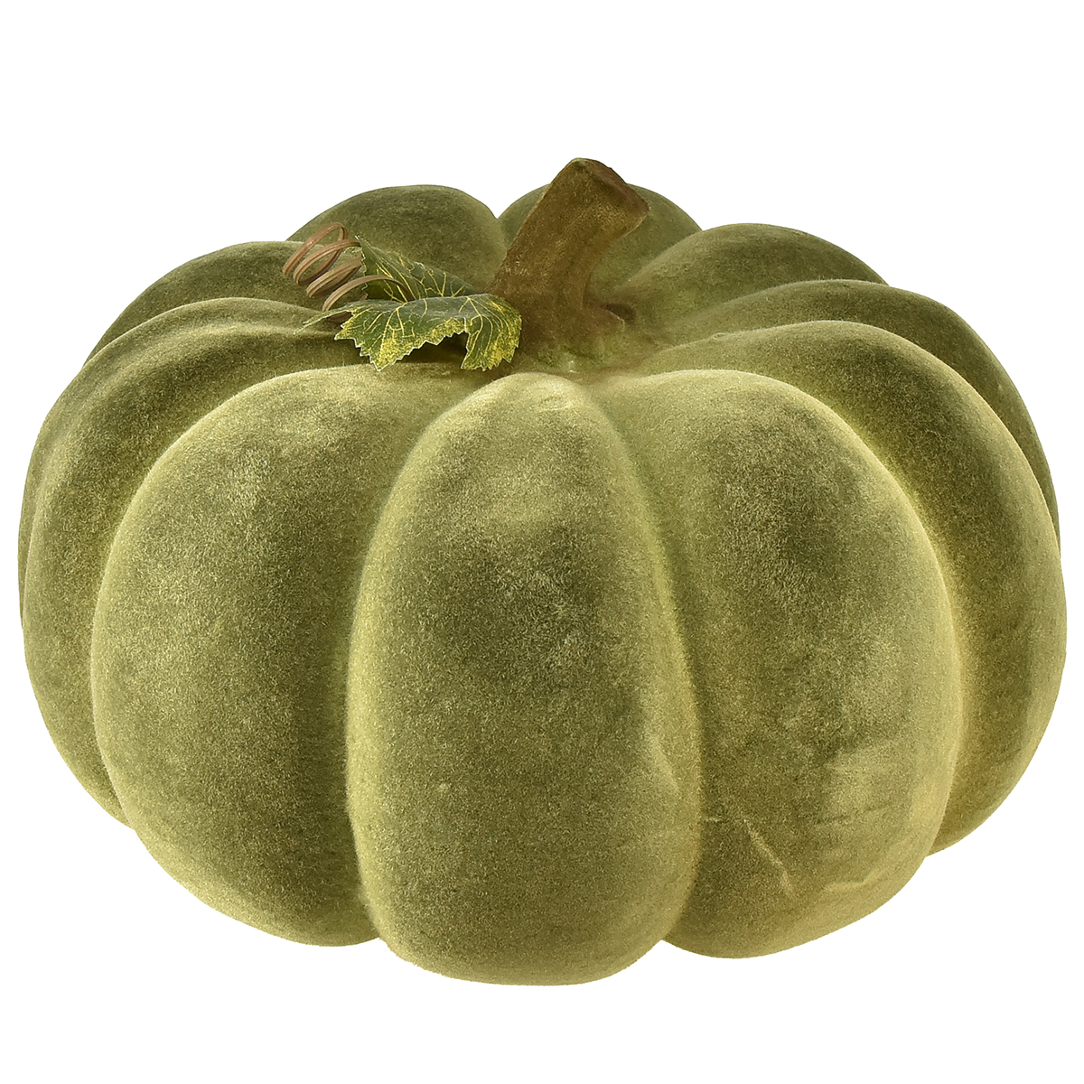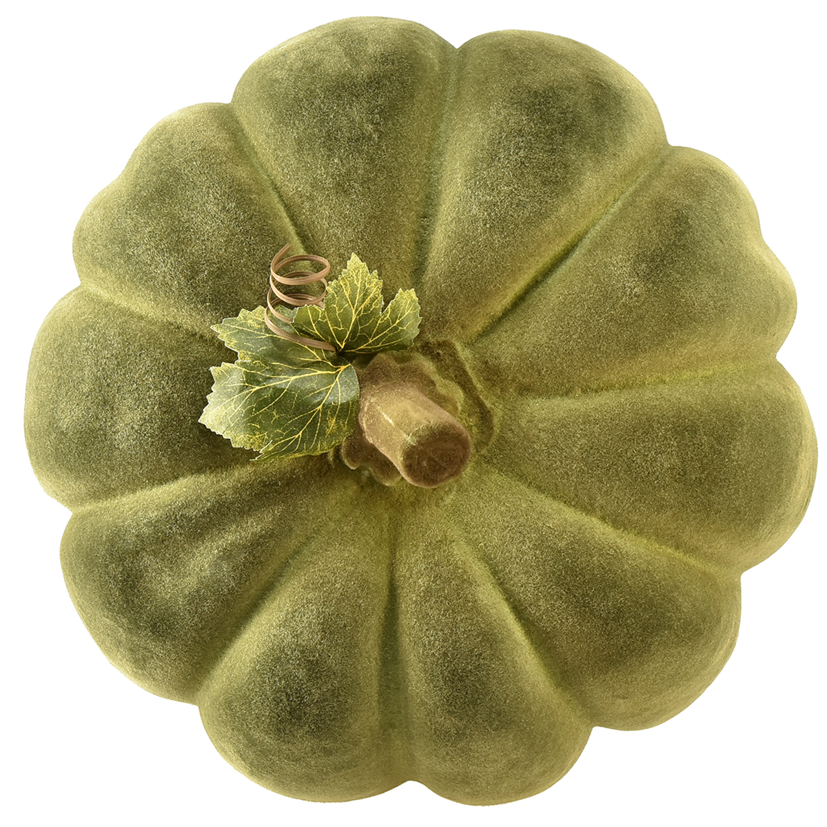 Deko Kürbis beflockt Grün – Samtig-schöne Herbstdeko 32cm