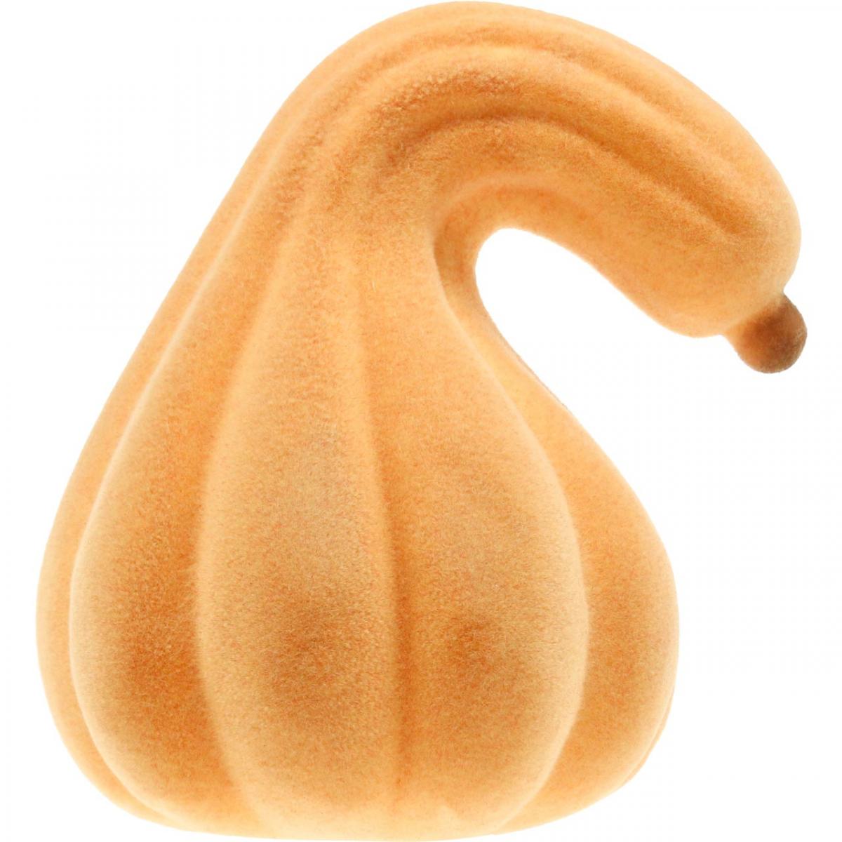 Produktname: Deko Kürbis gekrümmt Orange beflockt Künstlicher Zierkürbis 18cm