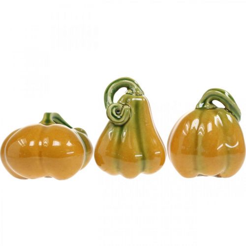 Deko Kürbis Keramik Orange, Grün Sortiert H7,5/10/11cm 3St