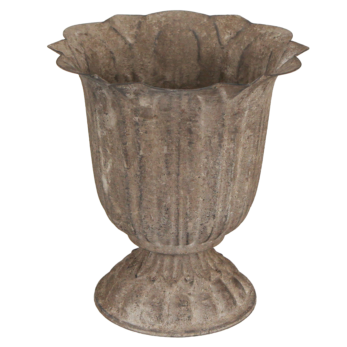 Produktname: Vintage Deko Pokal Pflanzgefäß Antik-Look Grau Braun Ø15cm H16cm für Rustikale Tischdeko und Stilvolle Wohnakzente