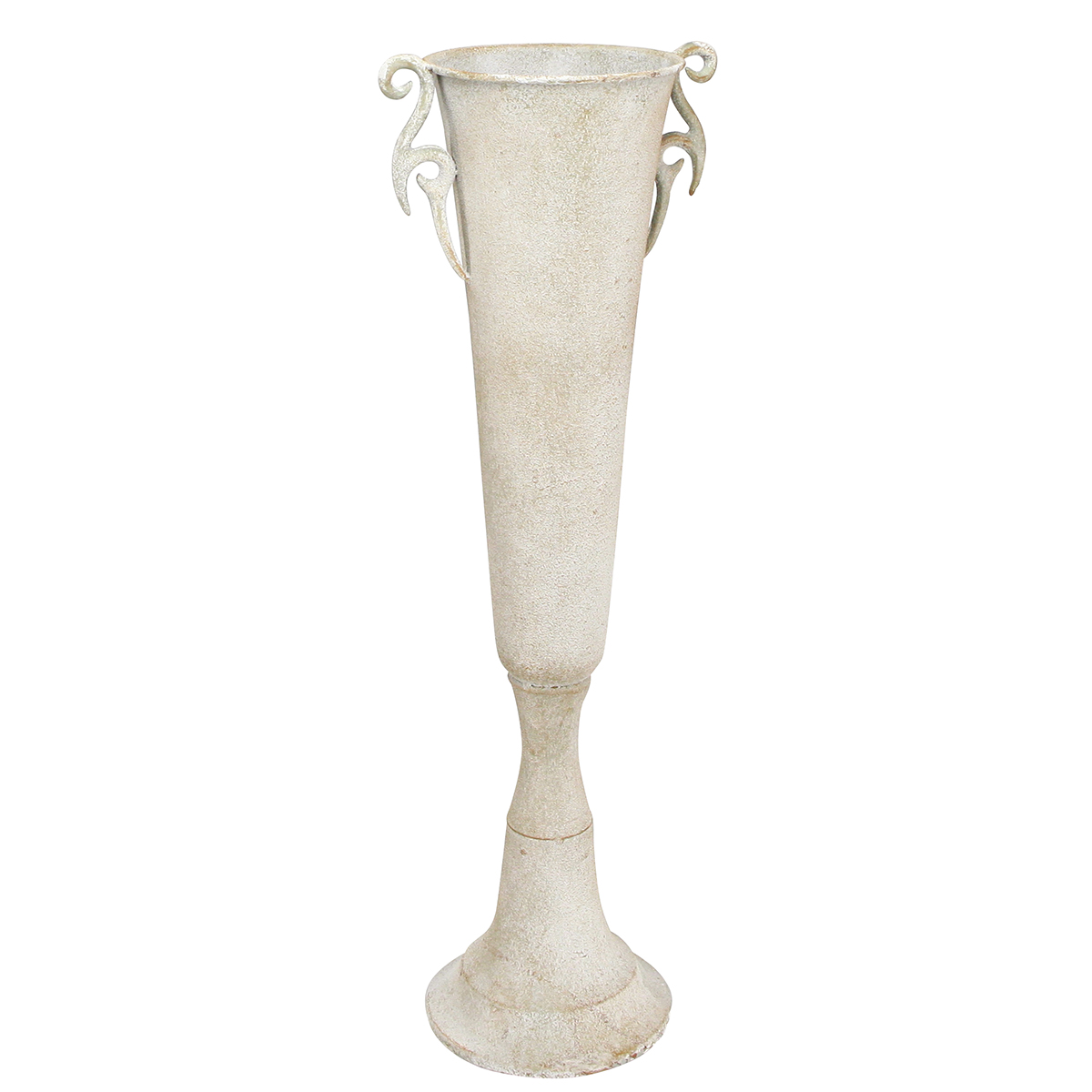 Produktname: Deko-Pokal-Vase Vintage Metall Antik-Stil mit Griffen, Grau, Ø15cm H59cm, für Trockenblumen & Innendekoration