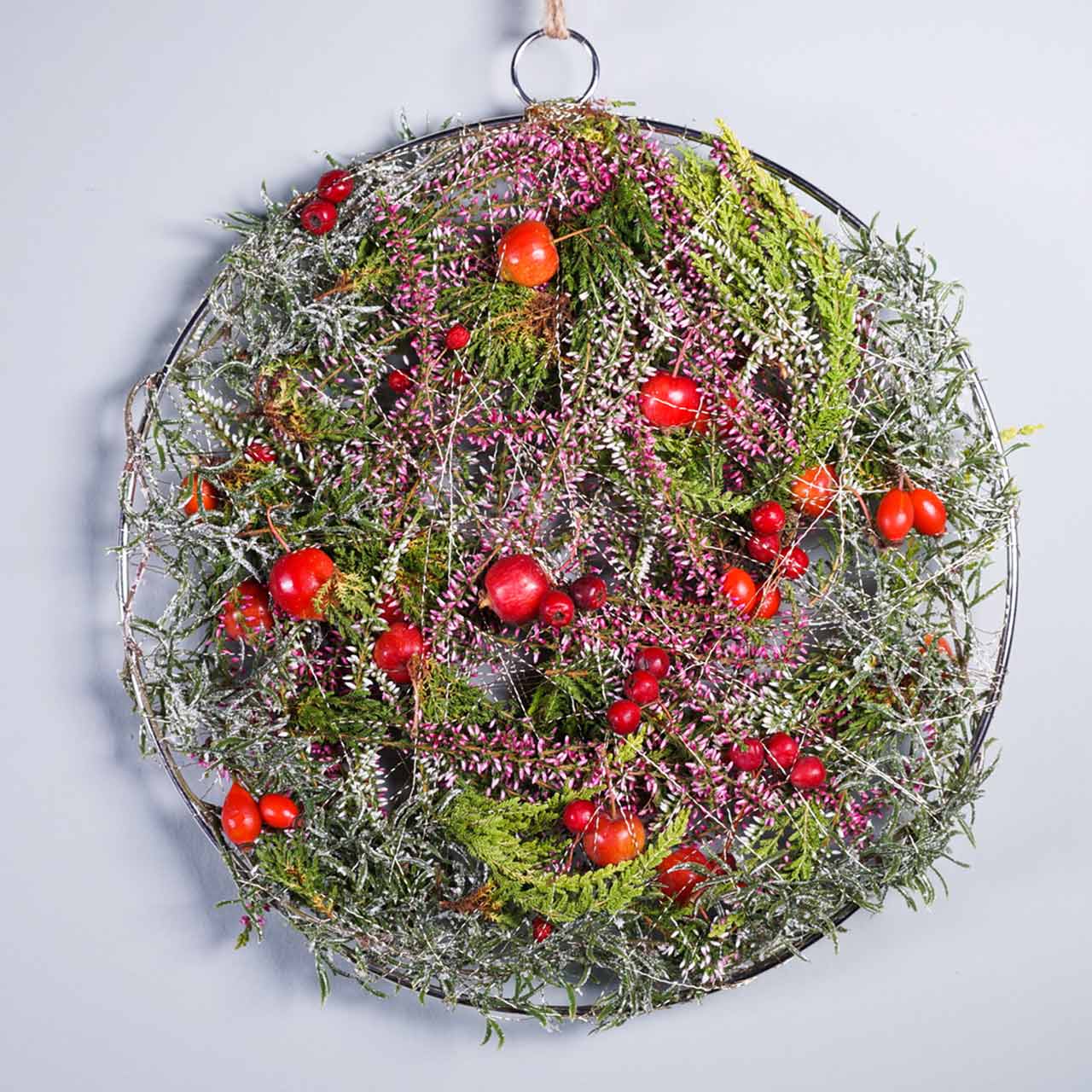 Die Lieferung beinhaltet vier Deko-Ringe aus Metall in der festlichen Farbe Altgold. Der Reif hat einen ungefähren Durchmesser von 35 Zentimetern bei einer Stärke von etwa 4 Millimetern. Eine verlötete Öse und ein Juteband erleichtern Ihnen das Aufhängen.