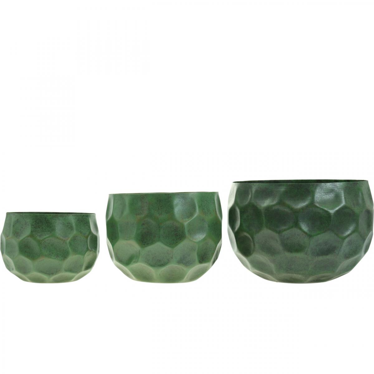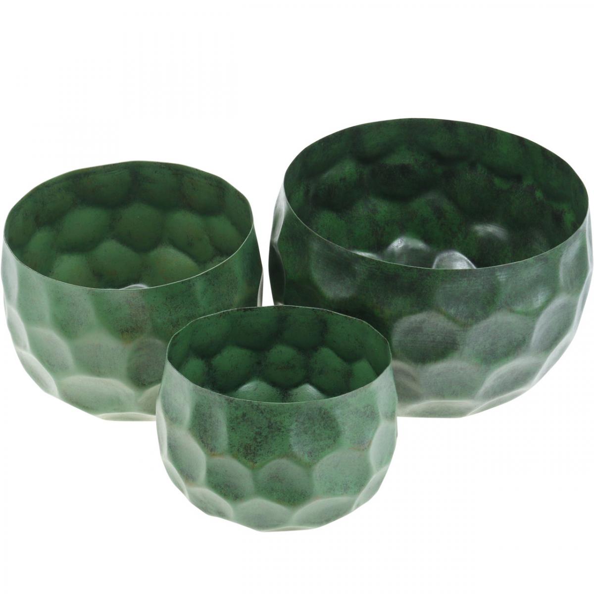 Produktname: Deko Schale Metall Grün Vintage Übertopf Ø25/20,5/16,5cm 3er-Set