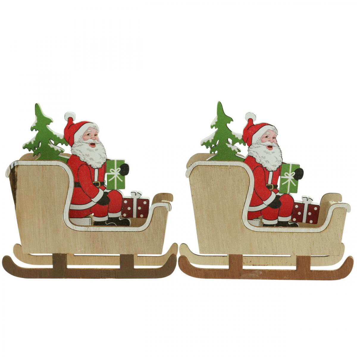 Produktname: Deko Schlitten mit Weihnachtsmann Weihnachtsschlitten 10cm 2St