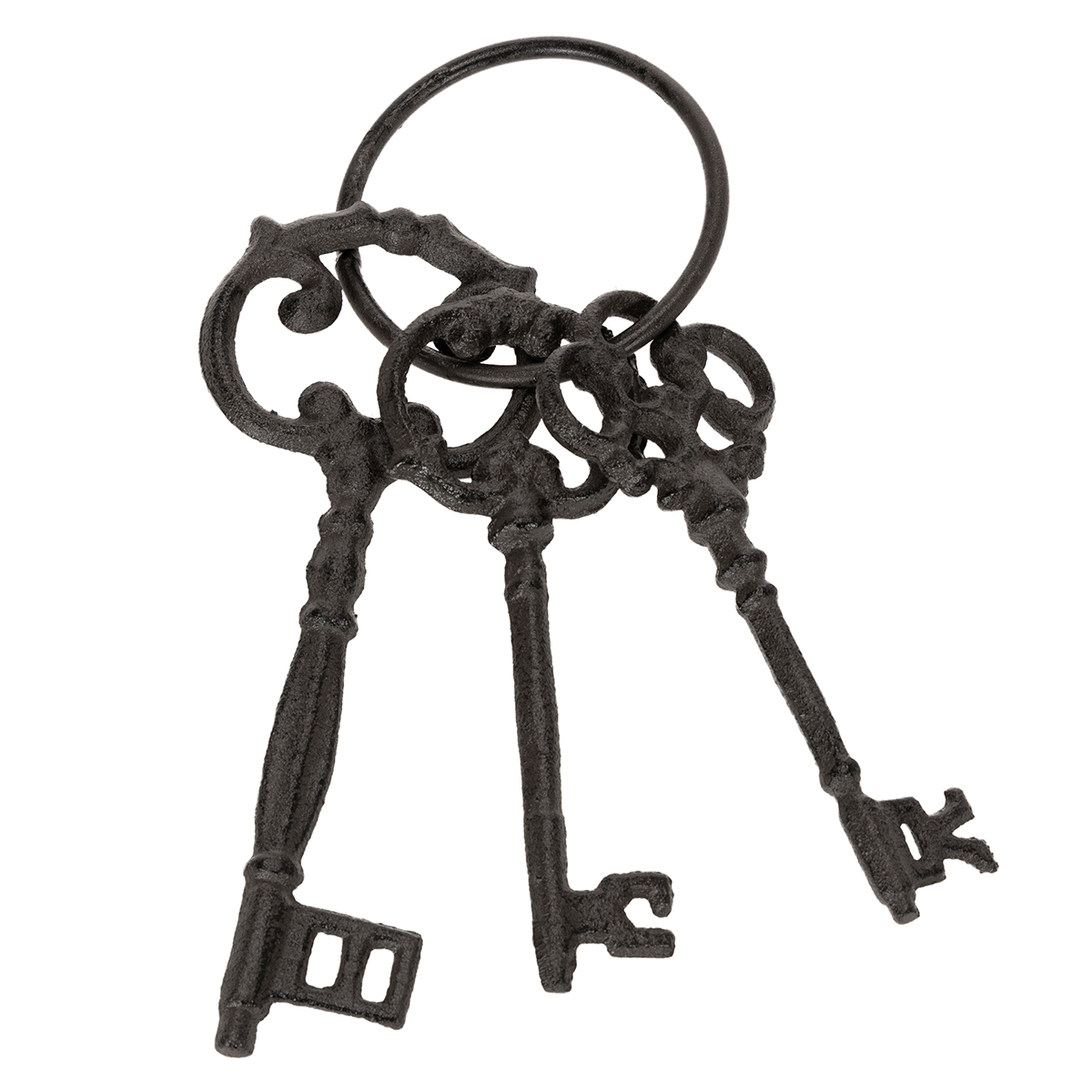 - Design: drei unterschiedliche Schlüssel in antiken Modellen nachempfundenen Formen an einem Ring