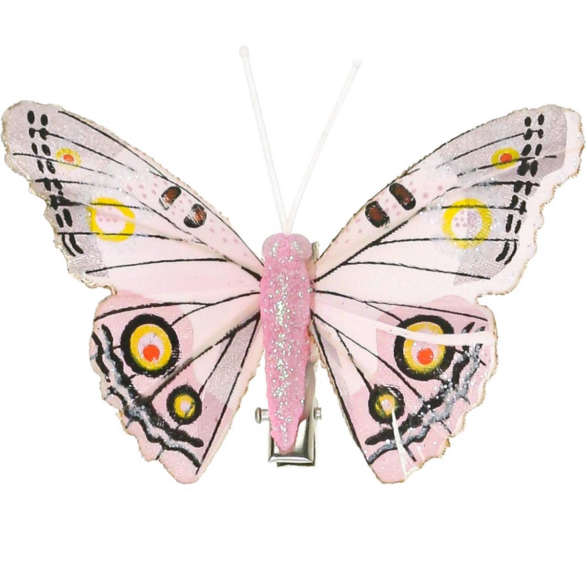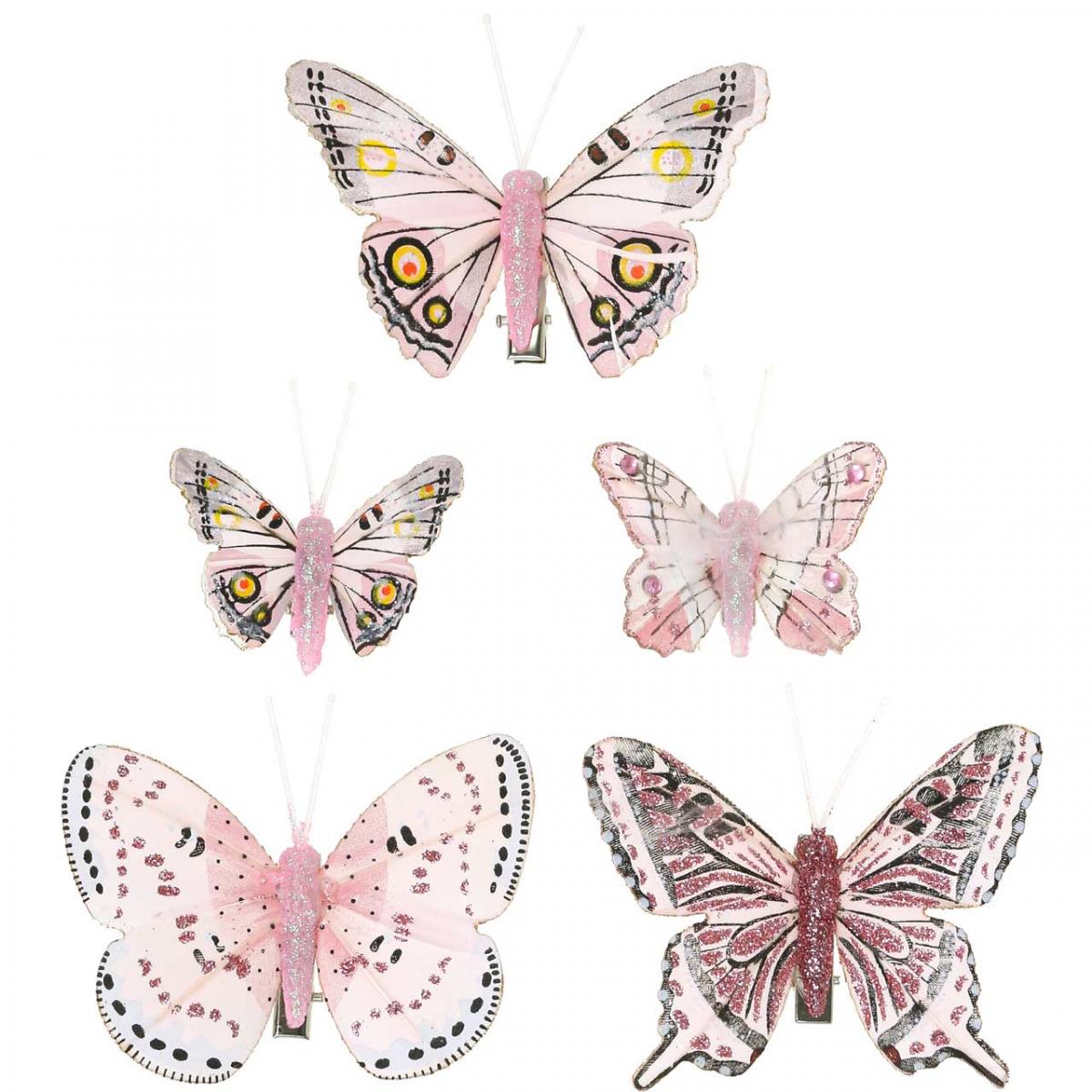 Deko Schmetterlinge mit Clip, Federschmetterlinge Rosa 4,5-8cm 10St