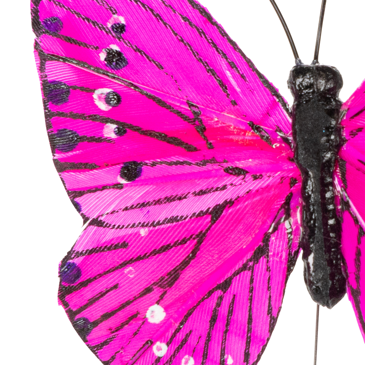 Produktname: Deko Schmetterlinge auf Draht für farbenfrohe Tischdekorationen 7cm 12St