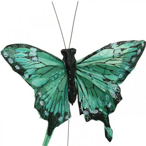 Deko-Schmetterlinge, Frühlingsdeko, Federschmetterlinge, Pflanzenstecker Grün, Braun 9,5×12,5cm 12St