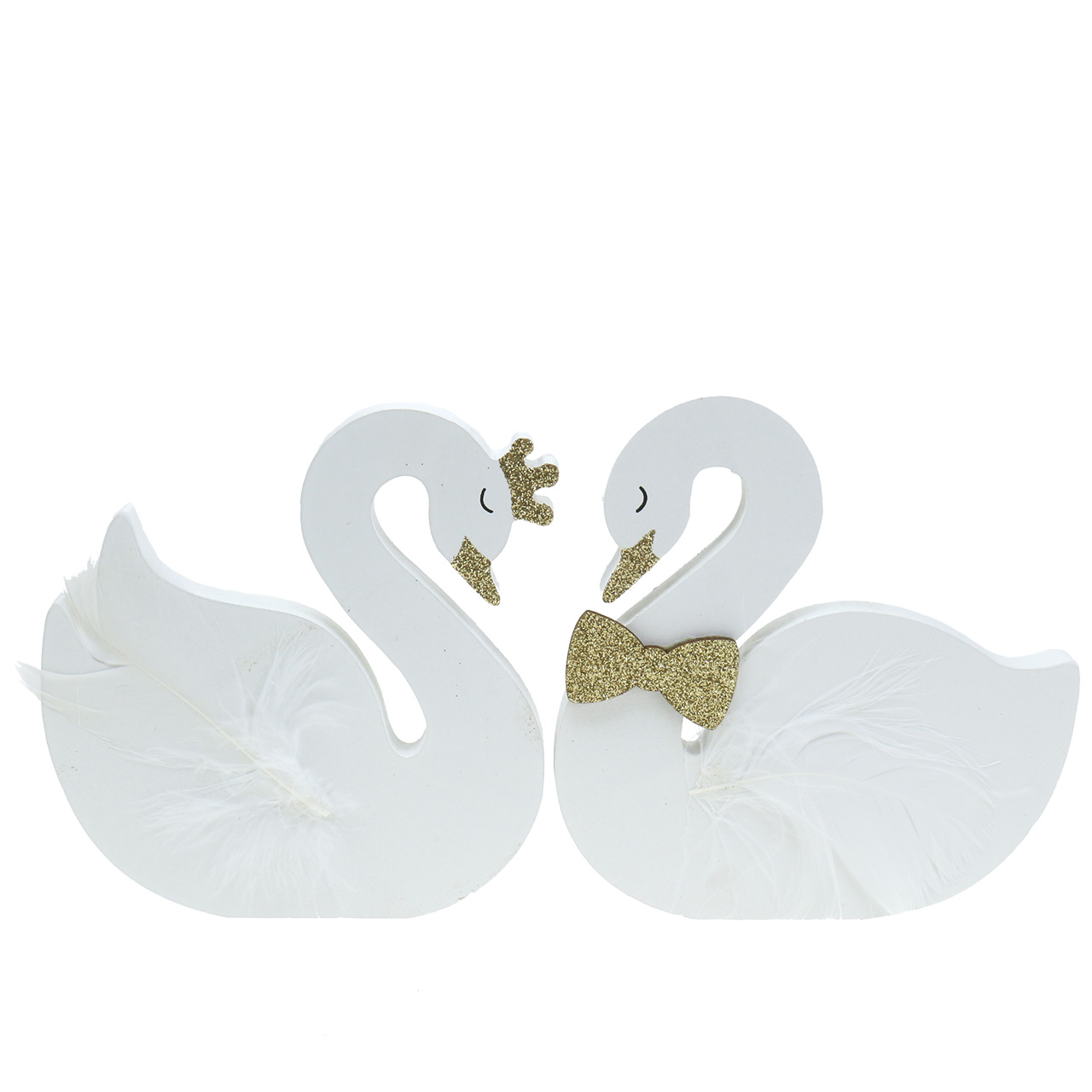 Deko-Schwäne Hochzeit Holz Weiß Gold 12x13cm 2 St