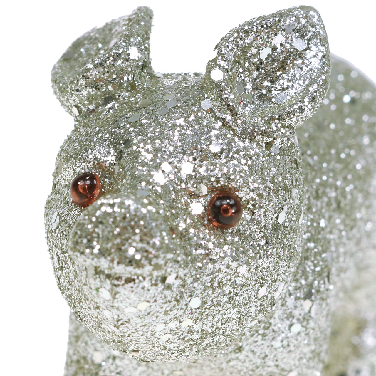Die Dekoschweine von VIANA mit Silber-Glitzer werden in einem Beutel zu insgesamt 8 Stück verkauft. Jede Figur ist ungefähr 10 Zentimeter lang und in etwa 6,5 Zentimeter hoch.