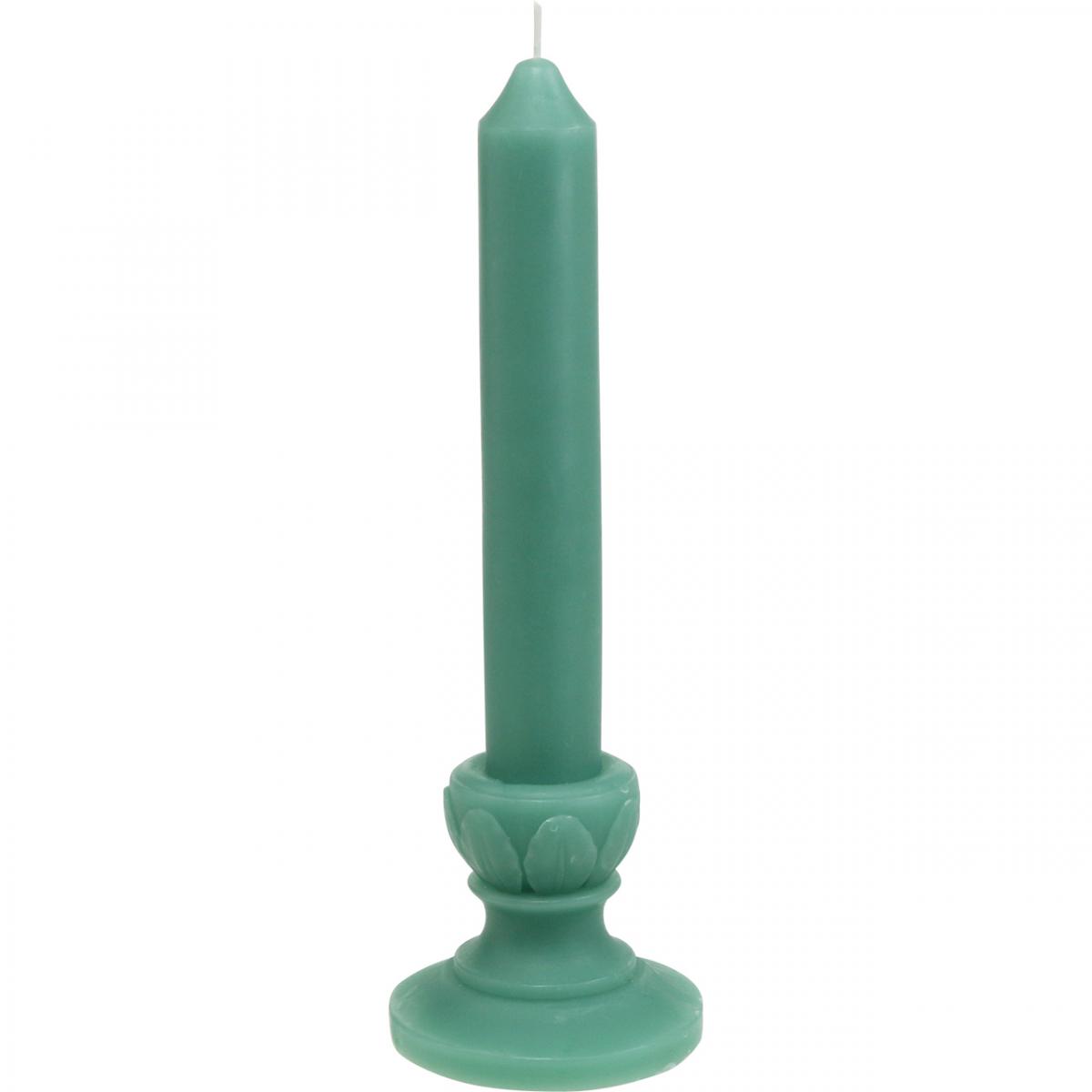 Deko Stabkerze Retro Kerze Wachs Tischdeko Grün 25cm