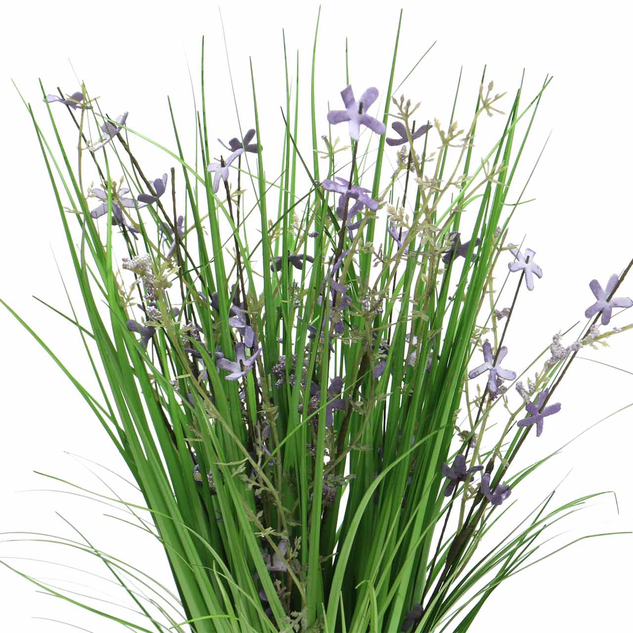 Saftiges Grün und kleine, fliederfarbene Blüten bilden in diesem künstlichen Deko-Stehstrauß mit Wiesenblumen einen wunderbaren Kontrast. Die Kunstblumen und Ziergräser sehen aus wie ein lockerer Bund. Die Dekomarke VIANA hat hier aus verschiedenen Blättern, Blüten und Halmen ein wirklichkeitsgetreues Ensemble zusammengestellt.
