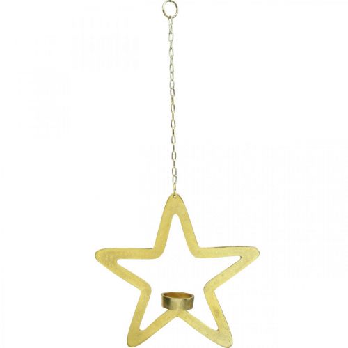 Produktname: Deko Stern Teelichthalter Metall zum Hängen Golden 24cm