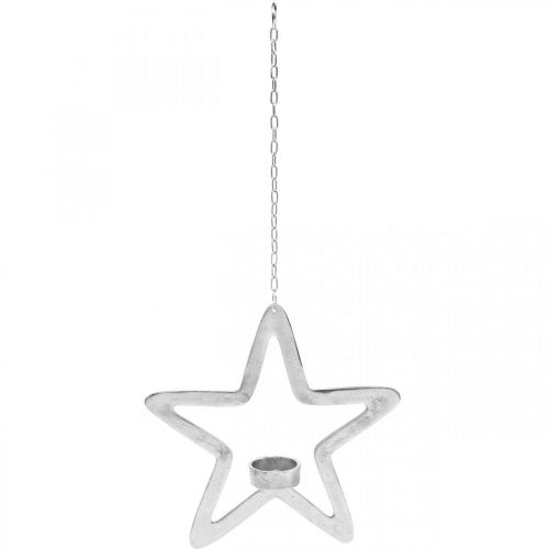 Deko Stern Teelichthalter Metall zum Hängen Silbern 24cm