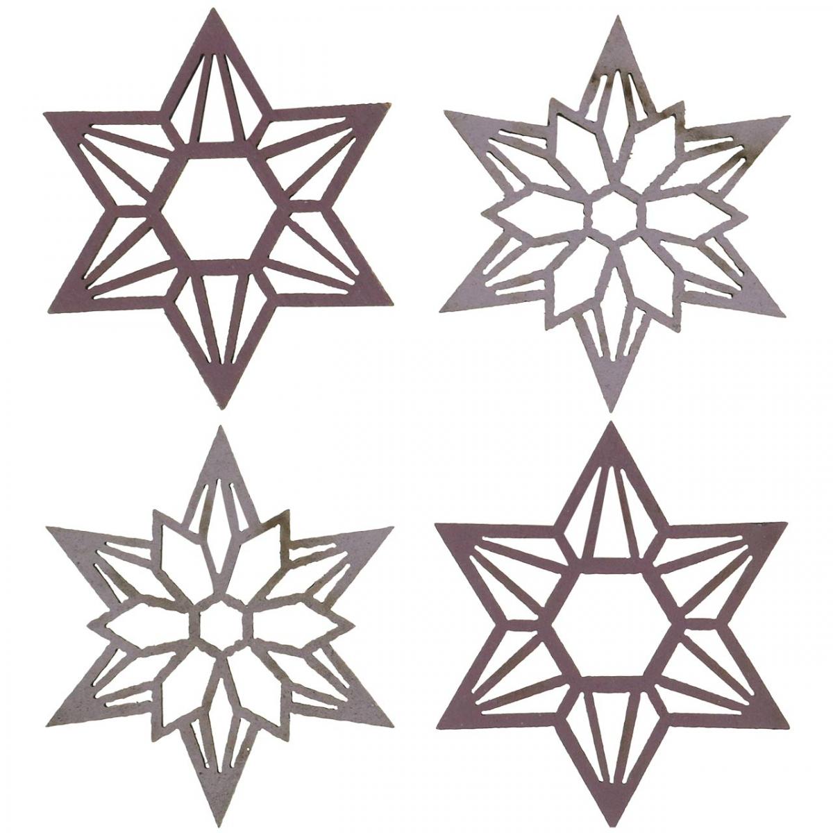 Deko Sterne Lila Holzsterne Schneeflocken selbstklebend 4cm Mix 36 St