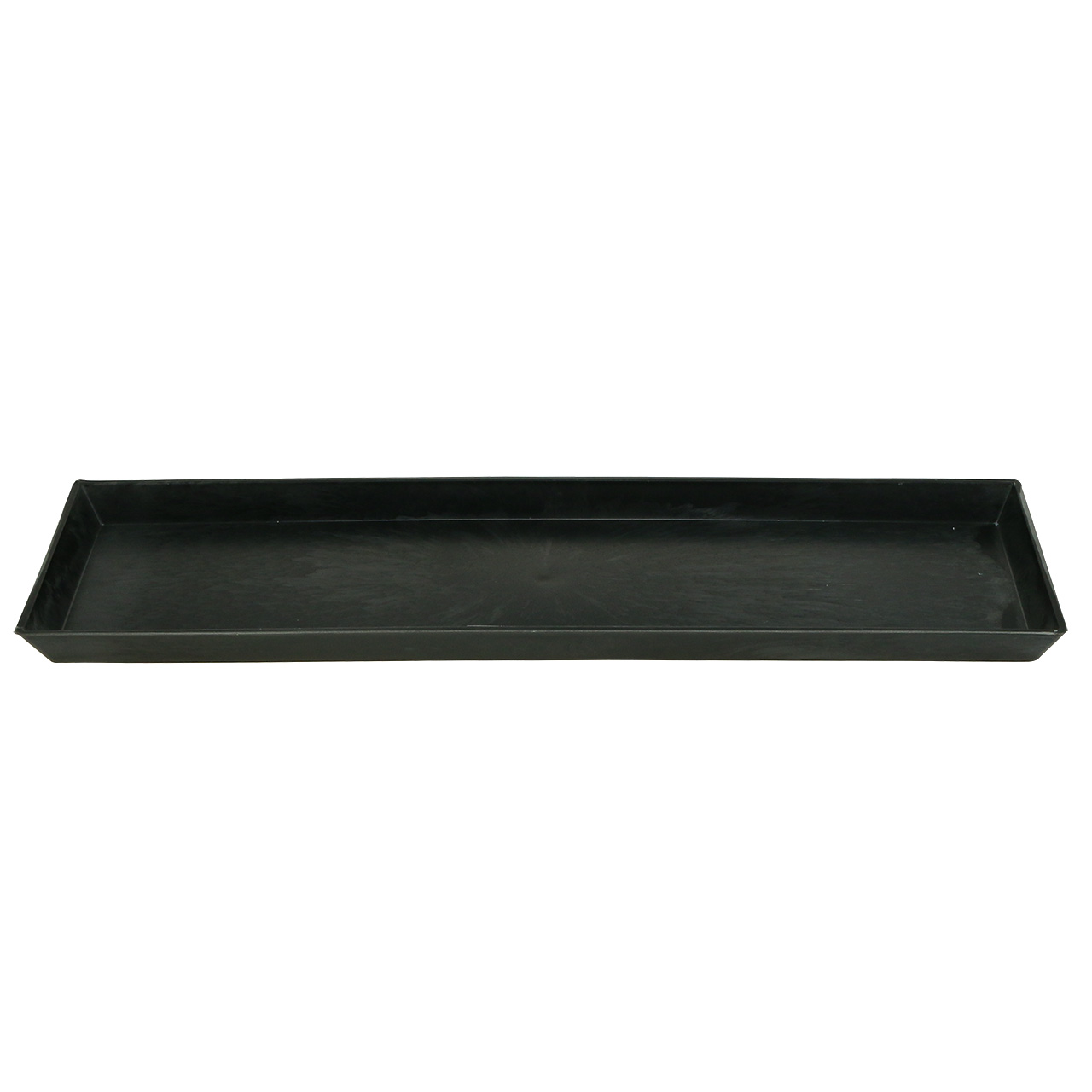 Das Dekotablett in der Farbe Anthrazit besteht vollständig aus Kunststoff. Die Innenmaße betragen etwa 40 x 12 Zentimeter und die Außenmaße etwa 43,5 x 12,5 Zentimeter. Die Höhe beträgt ungefähr 2 Zentimeter.