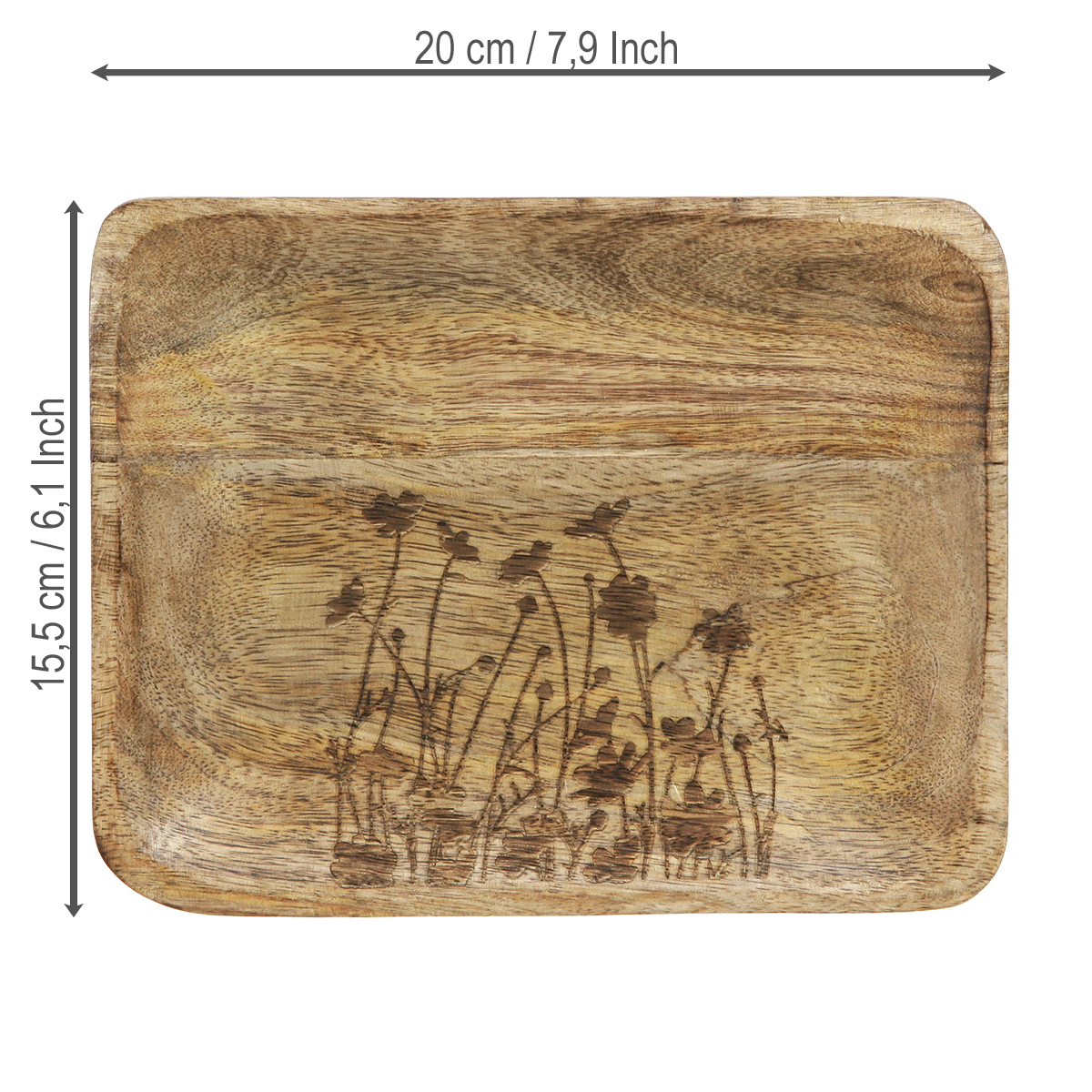 Produktname: Deko Tablett Holz mit Blumenmuster Mangoholz 20×15,5cm