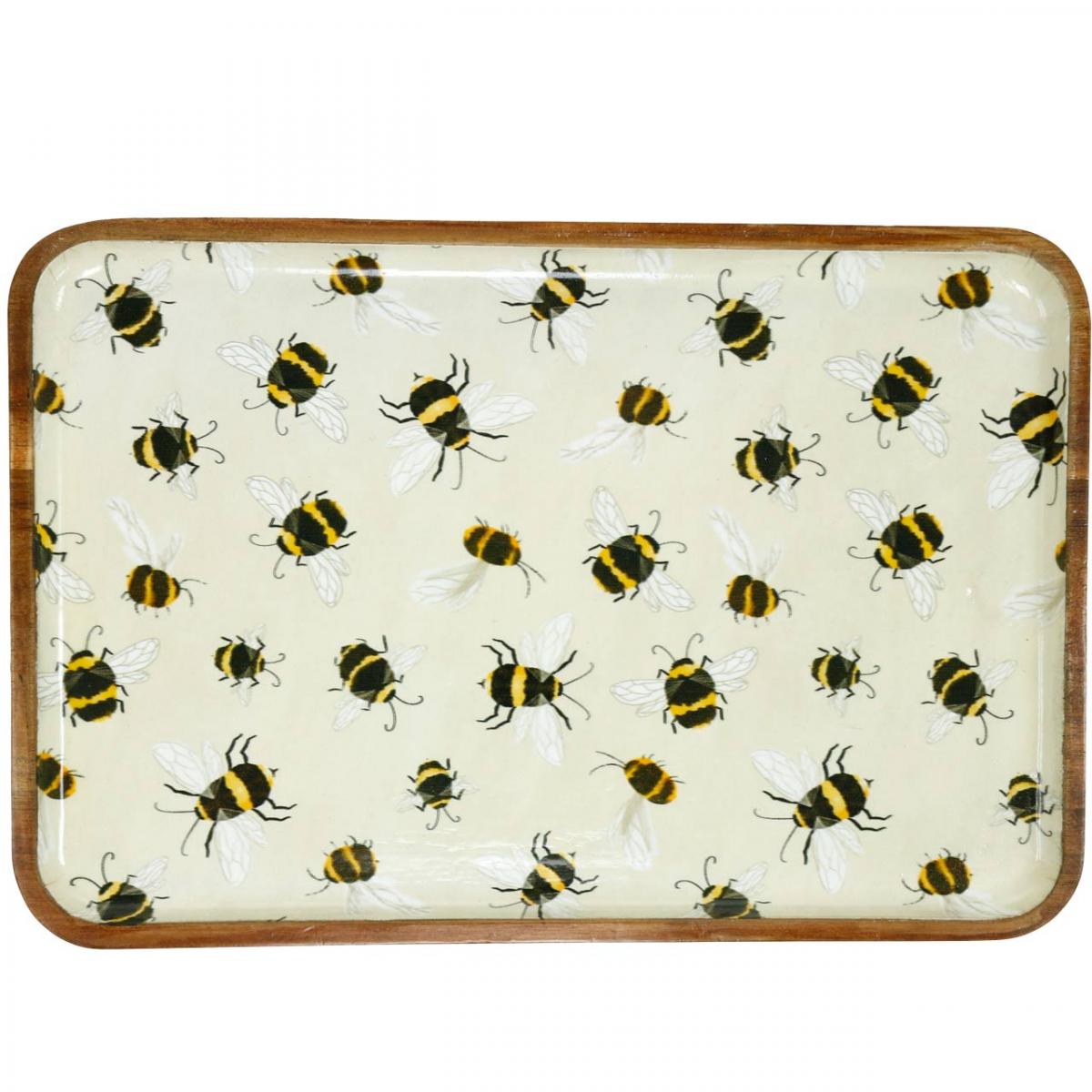 Deko Tablett Holz eckig Bienen Sommerdeko Tablett 35×23,5×2cm
