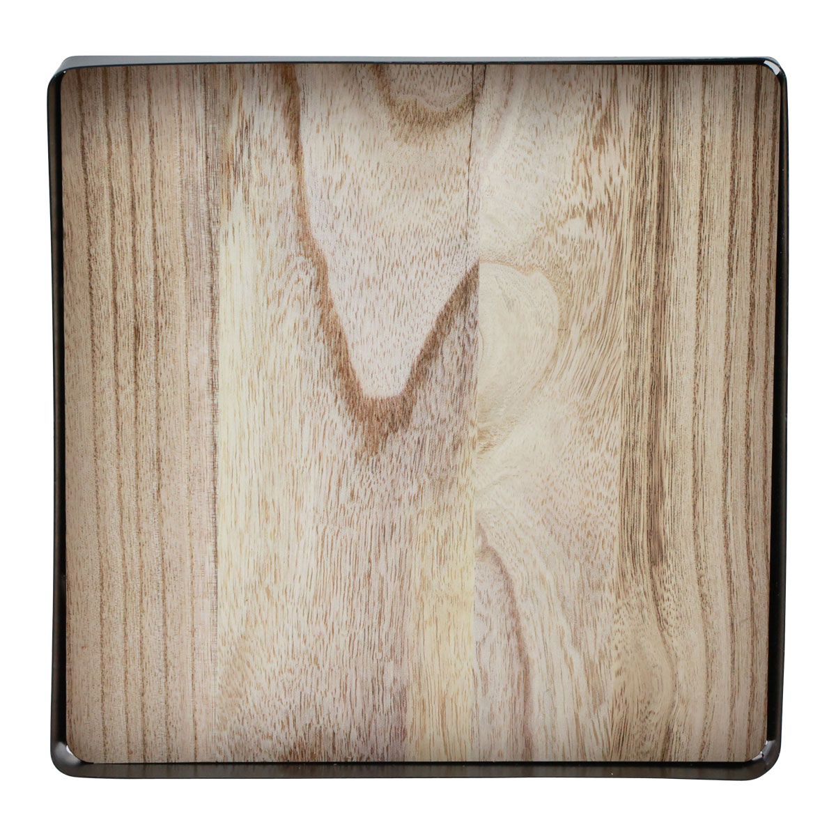 Deko Tablett Metall Holz quadratisch Natur Schwarz 25,5×25,5×4cm