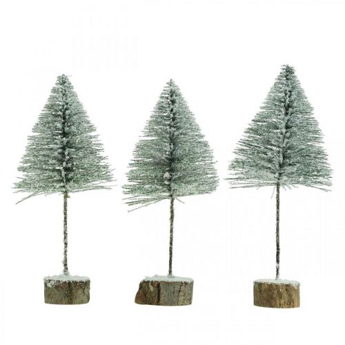 Diese beschneiten Deko-Tannen sind ein perfektes Deko-Accessoire für Ihre Winterdeko! Ein großer und zwei etwas kleinere Weihnachtsbäume kommen in einer transparenten Transportbox zu Ihnen um Ihr Zuhause im Advent zu verschönern.Die Tannenbäume bestehen aus grünen Kunststoffnadeln, die an einem biegsamen Metalldraht befestigt sind. Der Stamm ist mit braunem Papier umwickelt und endet in einer dicken naturbelassenen Astscheibe, welche den Standfuß der Weihnachtstanne bildet.