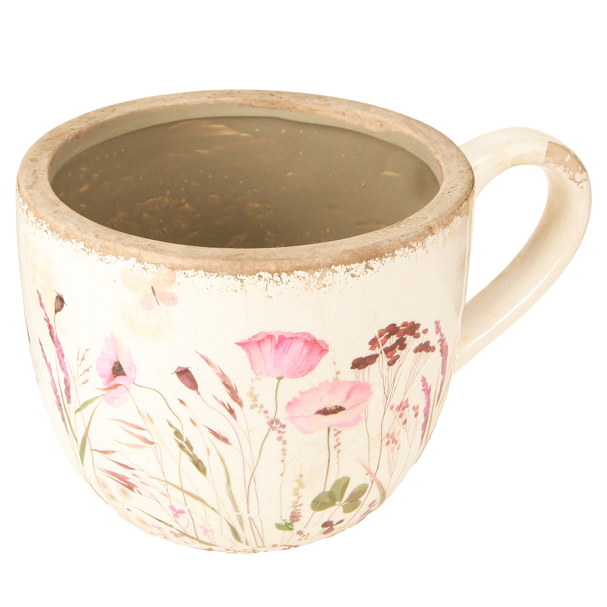 Deko Tasse Keramik Mohn Krakelee Creme Bunt 15cm×12,5cm