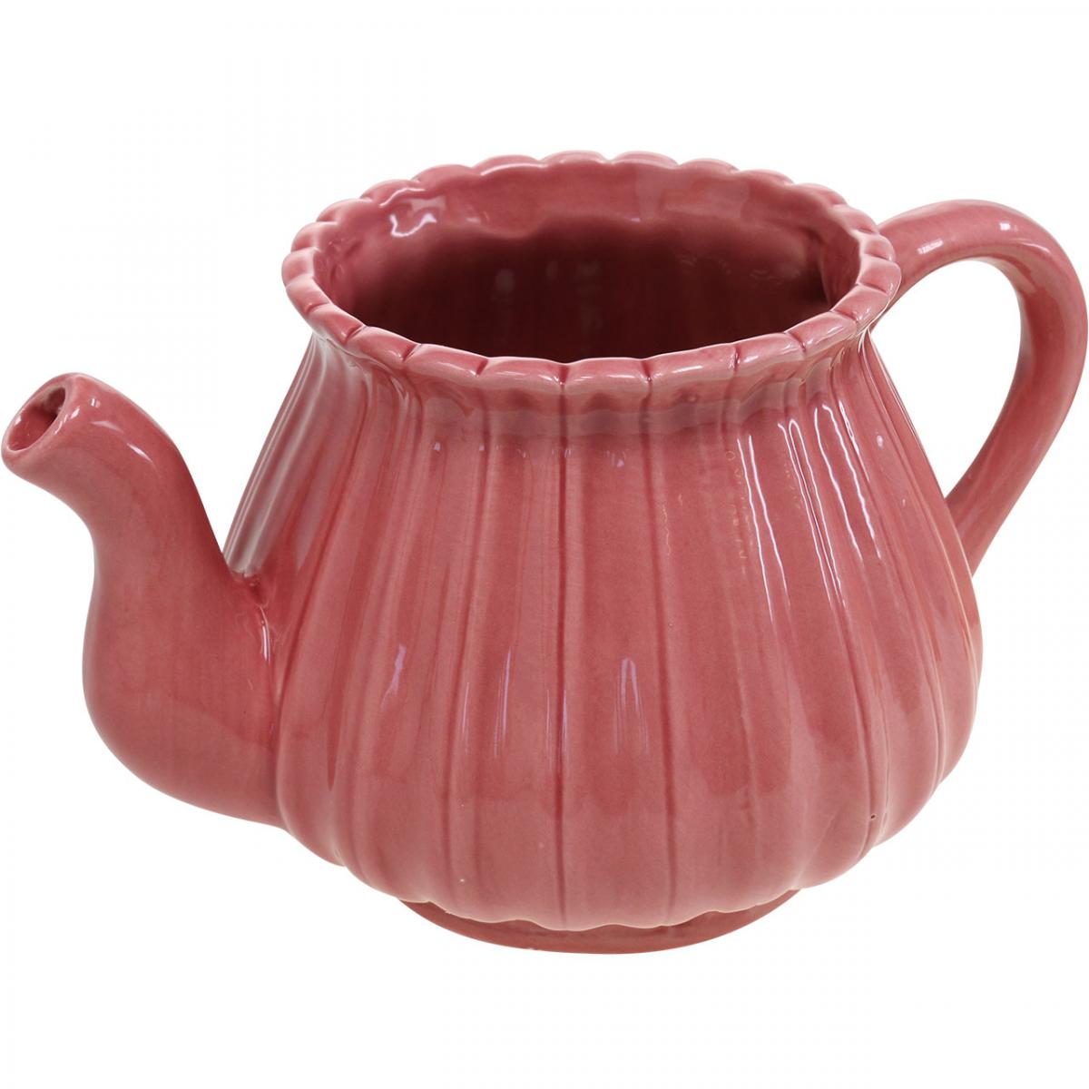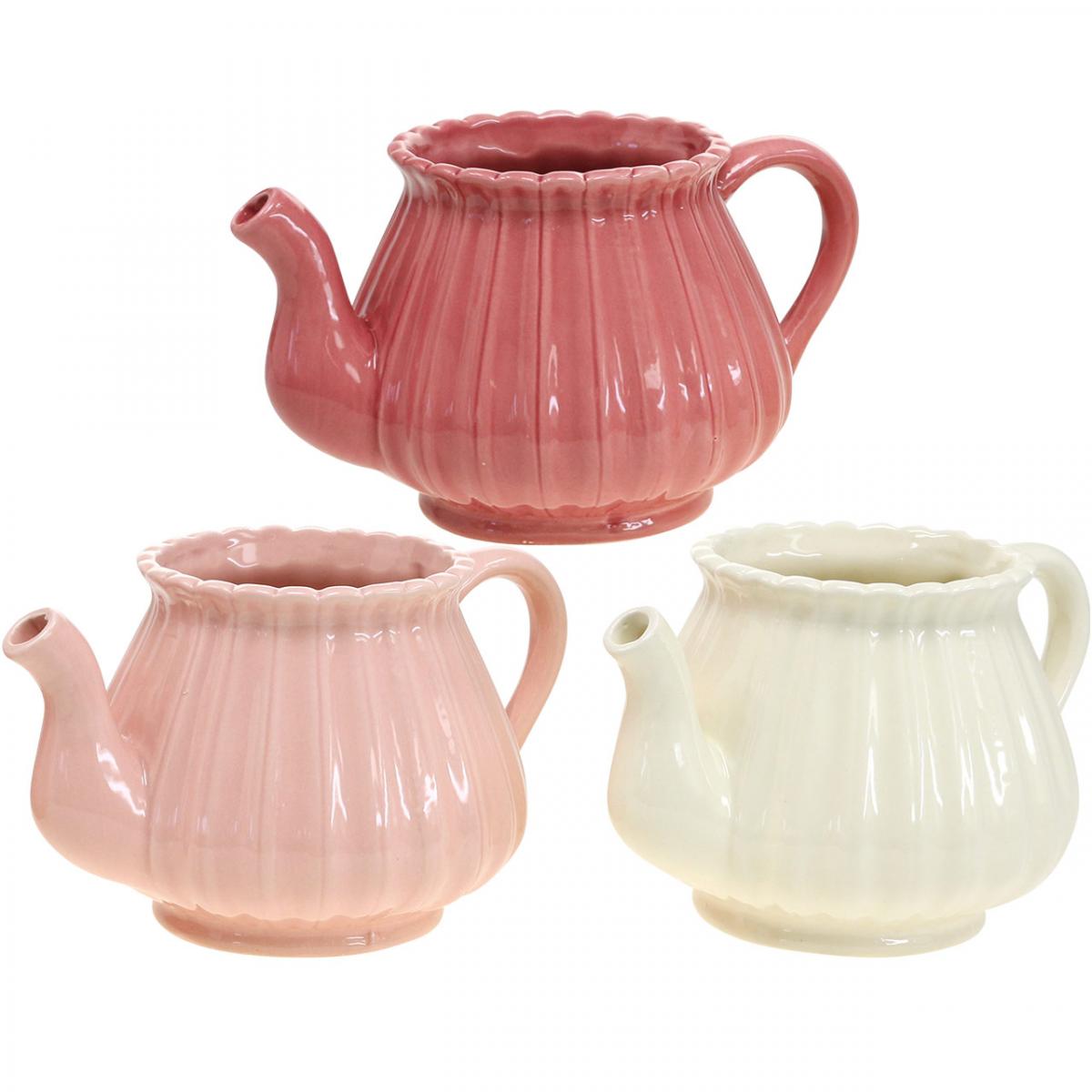 Deko-Teekanne Keramik Pflanztopf Rosa, Rot, Weiß L19cm 3St