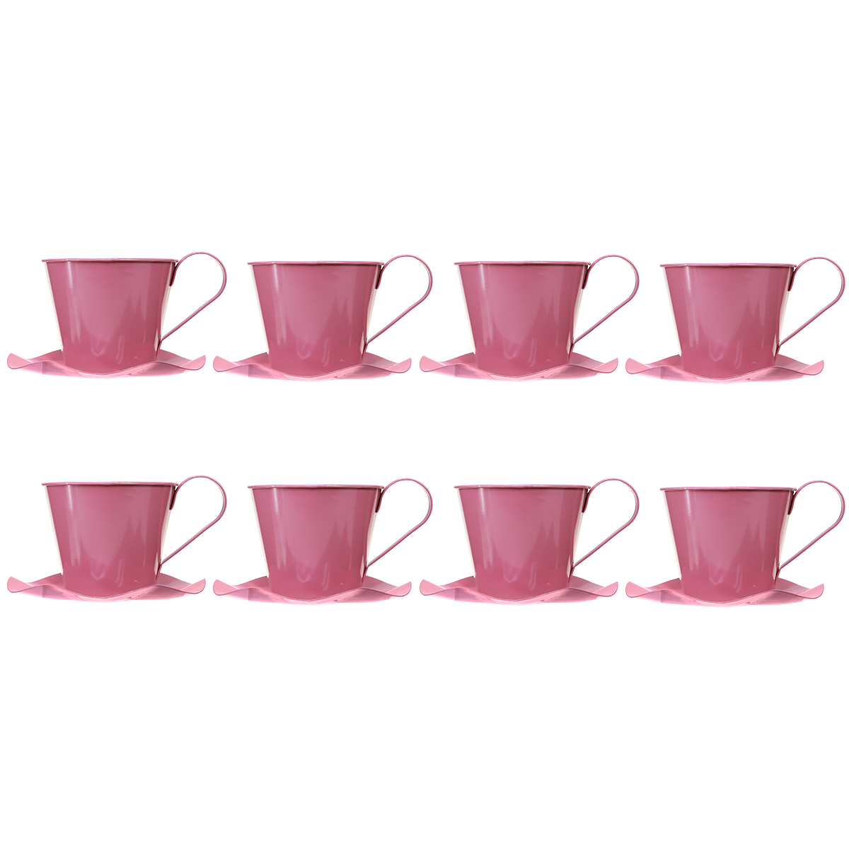Deko Teetasse Metall Tasse mit Teller Pink Ø12 H10cm 8 St