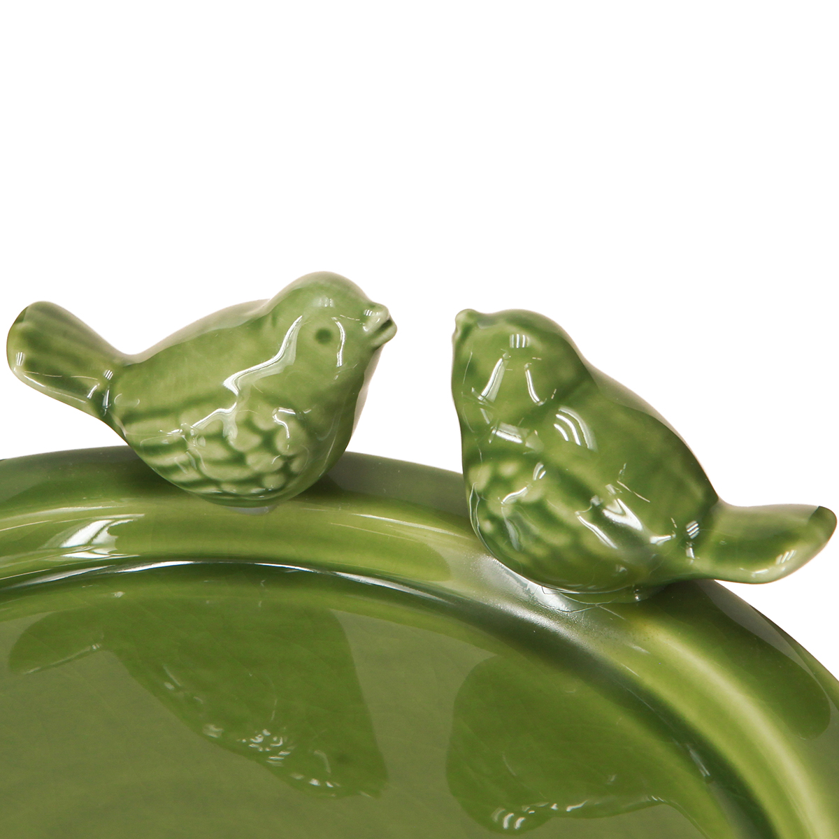 Deko Teller Vogeltränke Tischdeko Keramik Grün Ø20,5cm 2St