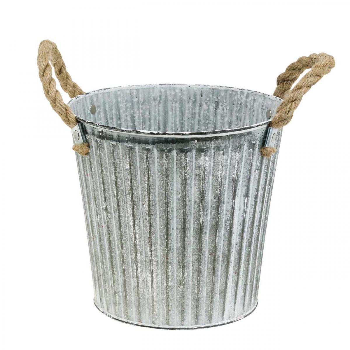 Deko-Topf zum Bepflanzen, Metalltopf mit Henkeln, Metalldeko Shabby Chic Ø21,5cm