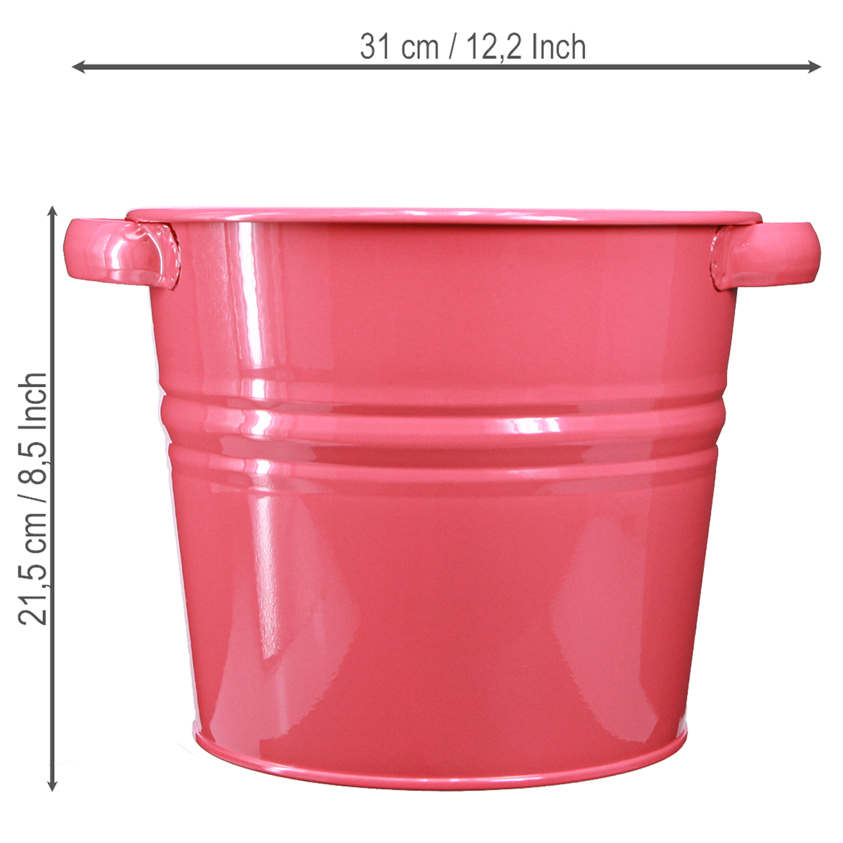 Deko Topf Rosa Metall Blumentopf Griffe 31x26x 21,5cm