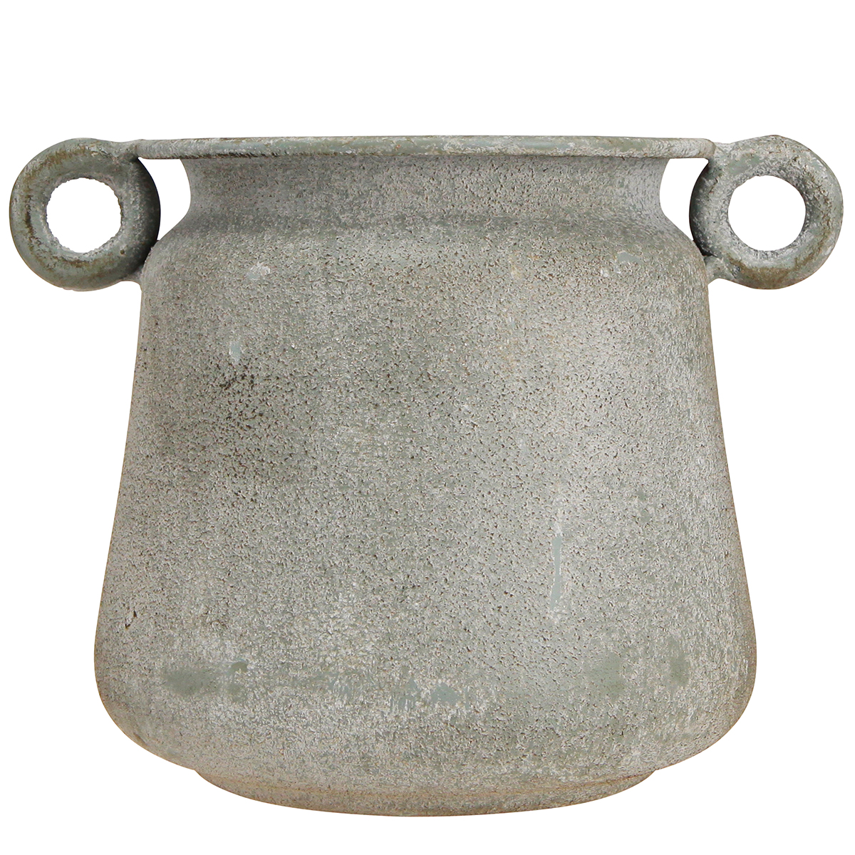 Produktname: Deko Topf Vintage Übertopf Metall mit Griffen Grau H13,5cm