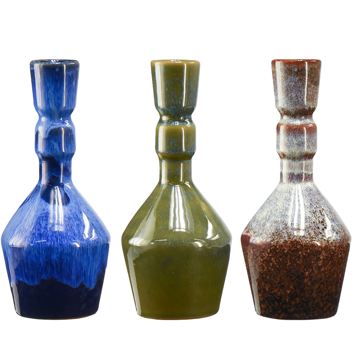 Deko Vase Keramik Blau Grün Braun Ø8cm H18,5cm 3St