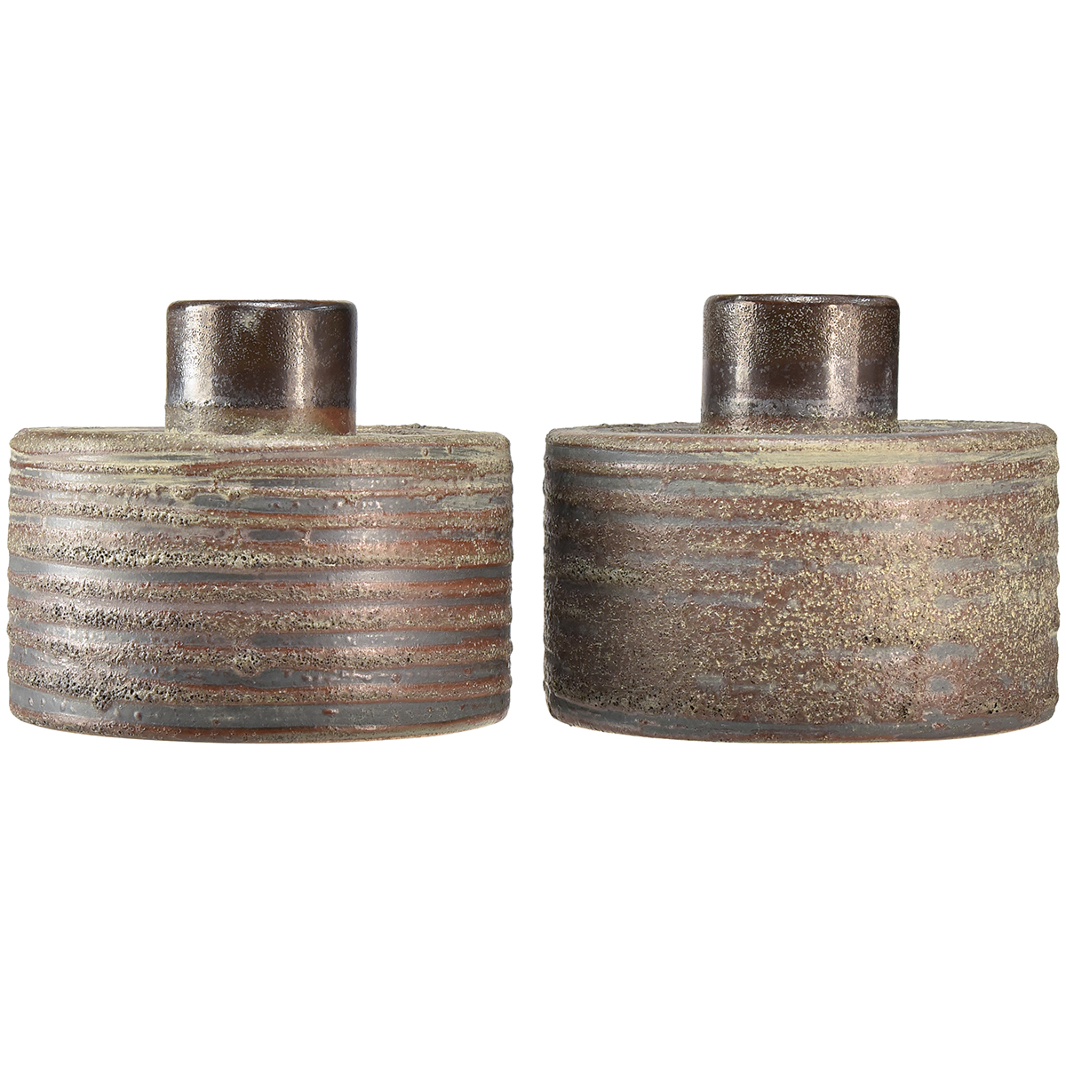 Verleihen Sie Ihrem Heim einen Hauch von ländlicher Eleganz mit unserer Keramikvase in den naturnahen Tönen Braun und Blaugrau. Dieses Set aus zwei kleinen Keramikvasen (12x10,5cm) ist ein wahres Multitalent in Sachen Dekoration und bietet eine zeitlose Bereicherung für jede moderne Inneneinrichtung.