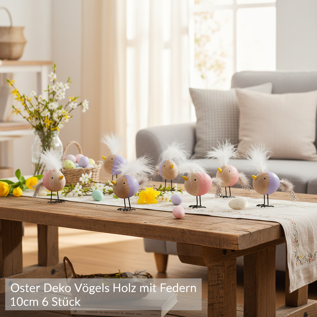Die Kombination aus natürlichem Holz, feiner Handarbeit und farbenfroher Gestaltung macht dieses Deko-Set zu etwas ganz Besonderem. Die kleinen Vögel sind nicht nur leicht zu platzieren, sondern auch vielseitig einsetzbar. Verpackt als Set mit sechs Stück, sind sie ideal geeignet, um Ihre Dekoideen auszuleben. Entdecken Sie die vielen Möglichkeiten: ein bunter Akzent auf dem gedeckten Ostertisch, die perfekte Ergänzung zur Frühlingsdeko oder ein liebevolles Mitbringsel für Ihre Liebsten.
