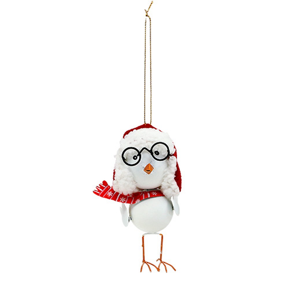 Dieses niedliche Kerlchen verleiht Ihrer stimmungsvollen Weihnachtsdeko einen ganz eigenen Charme. Der hübsche Deko Vogel mit Mütze in Rot-Weiß besticht mit seiner zuckersüßen Optik und ist nicht nur am bunt geschmückten Tannenbaum ein wundervoller Hingucker. Gefertigt ist das Vögelchen aus zwei übereinandergesetzten, weiß lackierten Metallkugeln und besitzt dünne Beinchen und einen Schnabel in Hellbraun sowie eine runde, schwarze Metallbrille. Den zauberhaft winterlichen Look verleihen dem Dekovogel die rote Ohrenklappen-Mütze aus Filz mit weißem Futter und der lockere Schal aus Metall mit Schneeflocken-Muster. Zusätzlich ist der Vogel mit einem Anhänger aus golden glänzendem Bindfaden ausgestattet.Wunderschön harmoniert der kecke Vogel aus Metall etwa mit geschmackvollem Christbaumschmuck in Rot-Weiß und einer skandinavisch angehauchten Weihnachtsdeko. Zwischen Rentierfiguren und Dekogegenständen aus Holz und Metall wirkt er besonders originell und kann beispielsweise auch an einen großen Strauß aus Tannengrün gehängt werden. Oder Sie setzen das niedliche Vögelchen als neckischen Tischschmuck auf die festliche Weihnachtstafel oder platzieren es in einem kunstvollen Tischgesteck oder als Highlight in Ihrem Adventskranz. Auch auf Kommoden, Beistelltischen und Fensterbrettern verbreitet die Dekofigur weihnachtliche Stimmung und eignet sich darüber hinaus hervorragend, um winterliche Bastelideen umzusetzen. Befestigen Sie den Vogel zum Beispiel zusammen mit weiteren Dekoanhängern und Naturmaterialien wie Zapfen und Nüssen an einem dekorativen Seidenband und stellen so ein einzigartiges Mobile her, das sie beispielsweise als zauberhaften Fensterschmuck verwenden können.