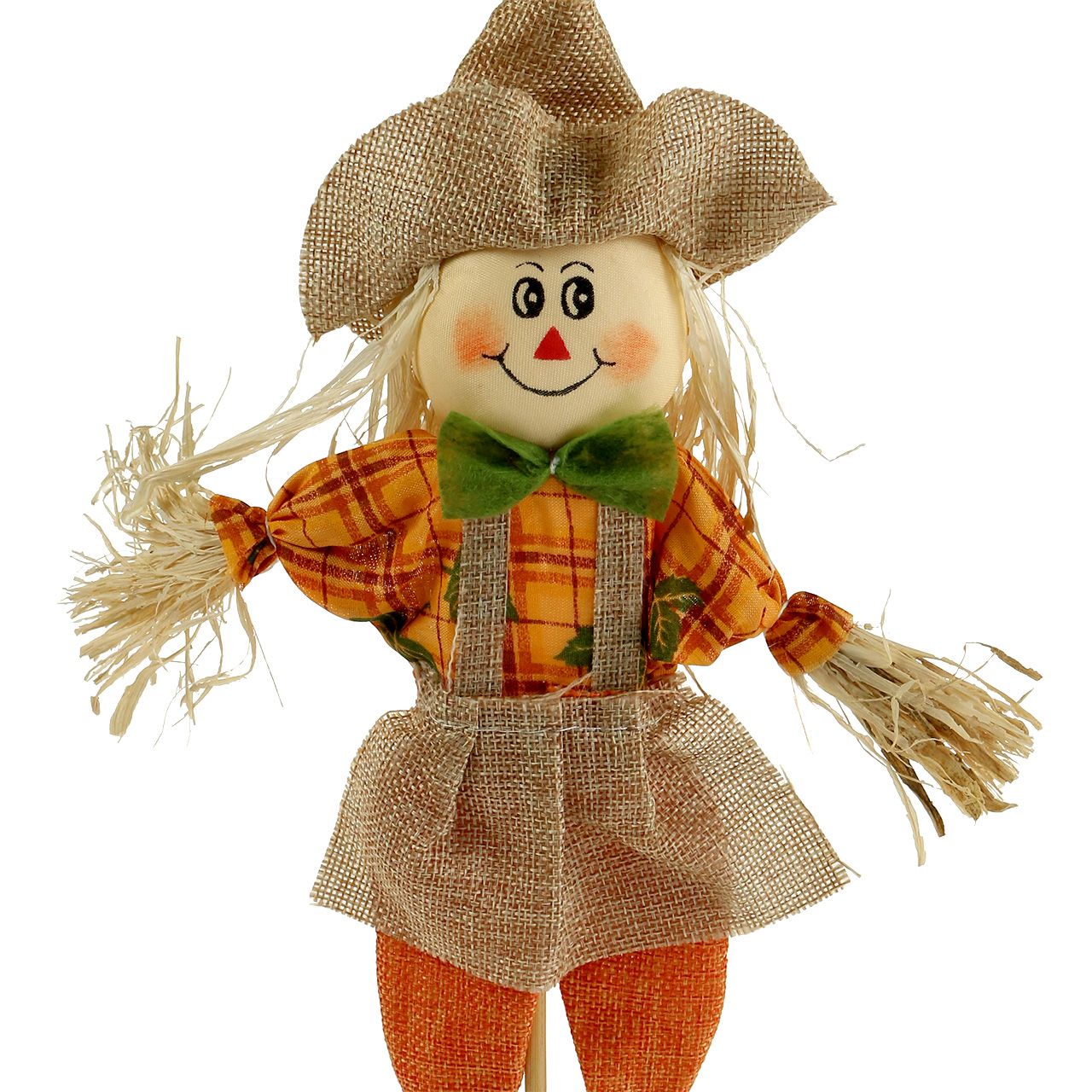 Mit Hilfe eines langen Stabes aus Holz können Sie die lustigen Deko Figuren, die aus Naturmaterialien wie Leinen, Filz und Stroh bestehen, ganz einfach in Blumenkästen, Pflanzkästen oder Beete stecken. Wunderbar schauen die Deko Figuren zum Beispiel in einem Topf neben einer langstieligen Sonnenblume aus, die Sie schön vor Ihrer Haustür oder im Vorgarten platzieren können. Zusammen mit einem geschnitzten Kürbis eignet sich dieses Ensemble auch herrlich als kindgerechte Halloween Deko. Auch als Deko im Schaufenster können Sie Ihre Kunden mit den Strohfiguren in Herbststimmung versetzen.