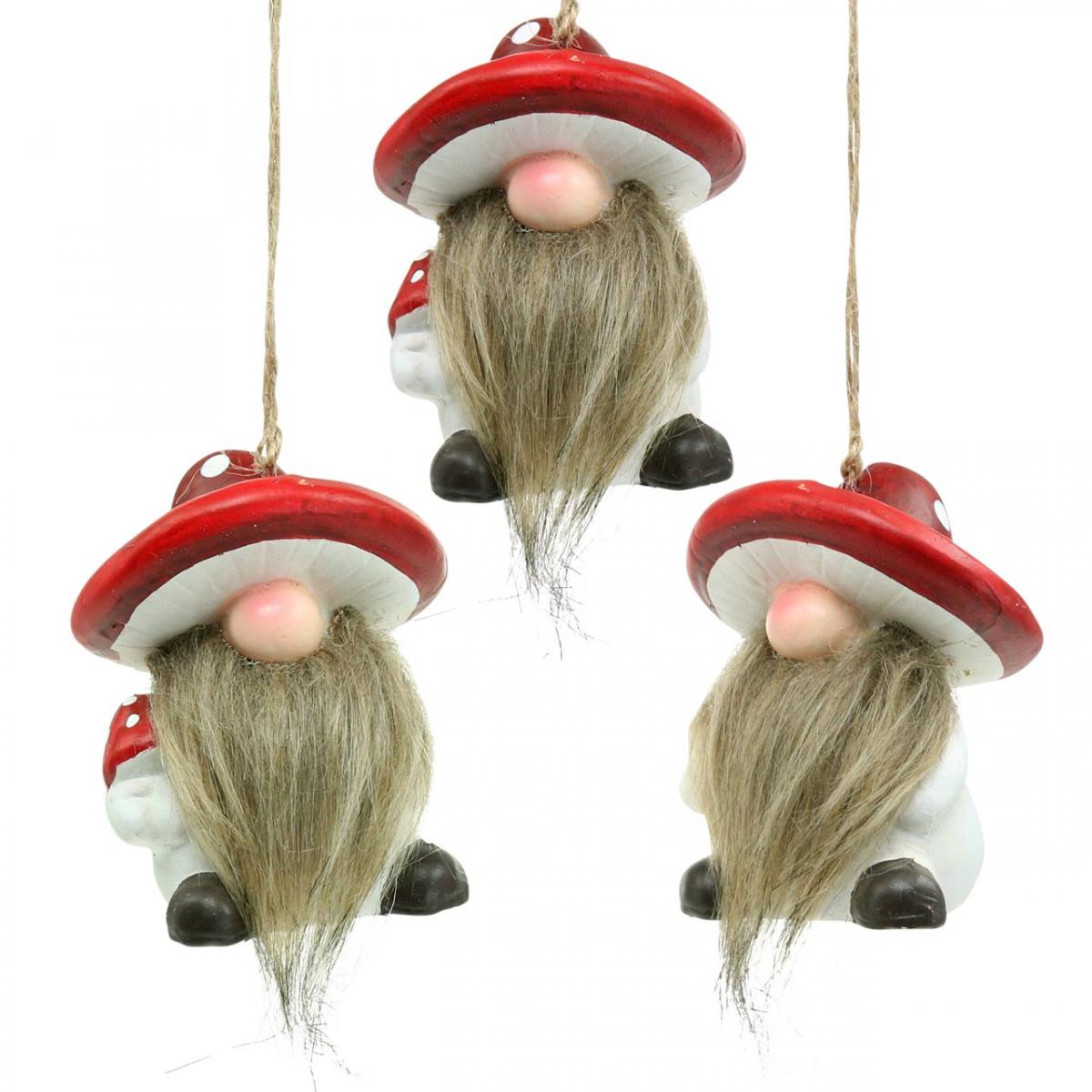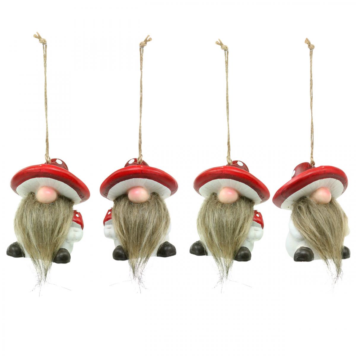 Deko Wichtel Keramik zum Hängen mit Pilzhut Rot, Weiß H8cm 4St