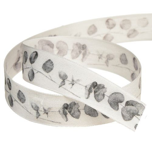 Produktname: Dekoband Schmuckband Eukalyptus Weiß Grau B25mm L20m